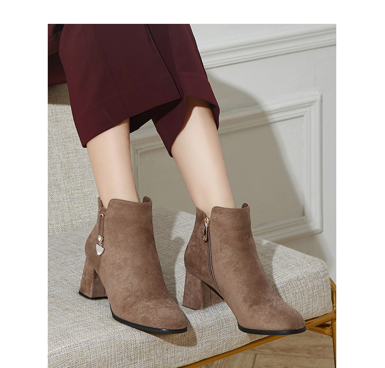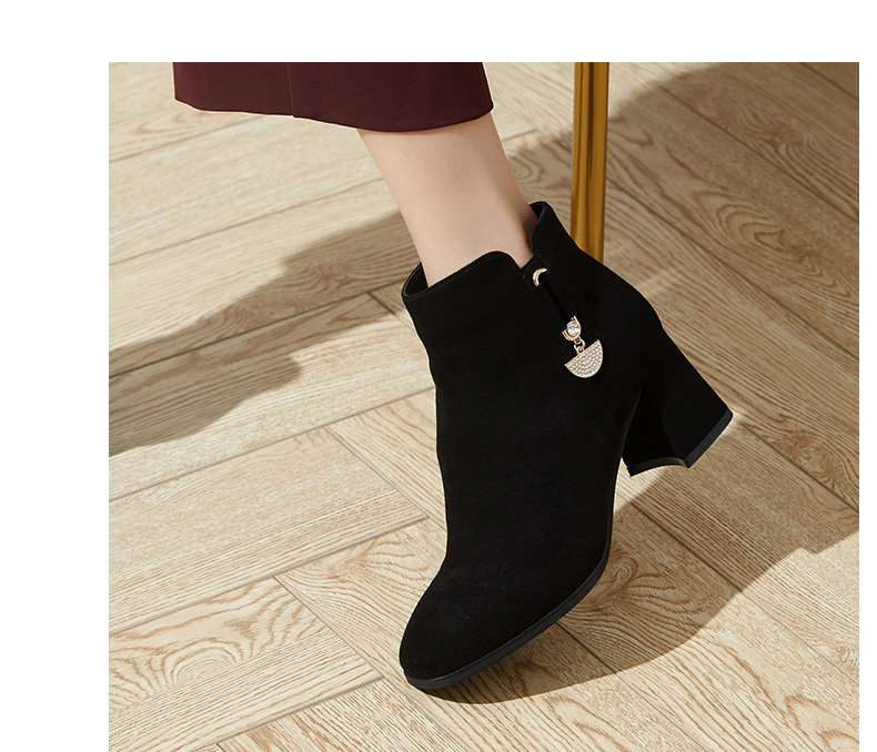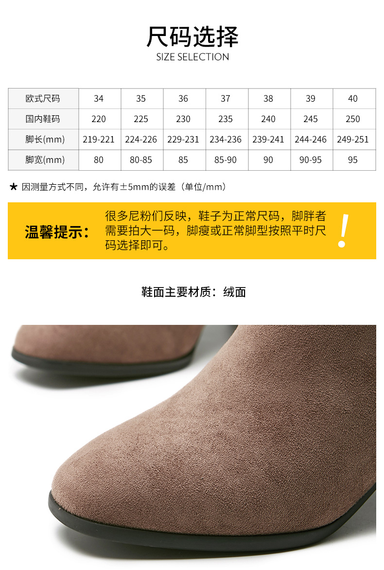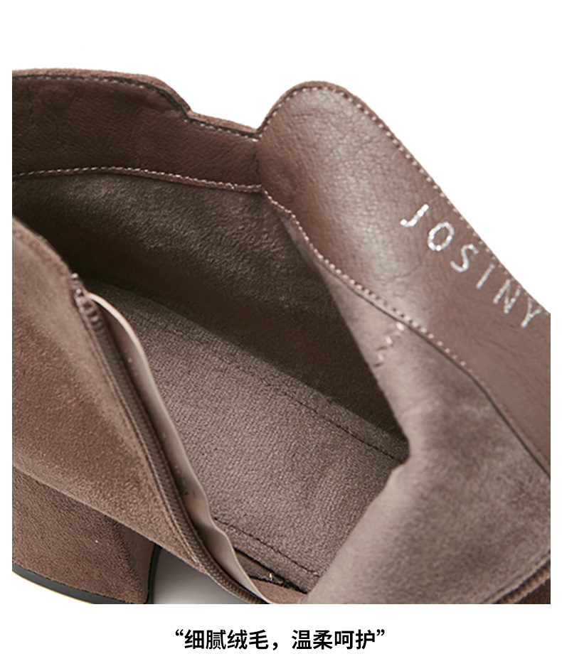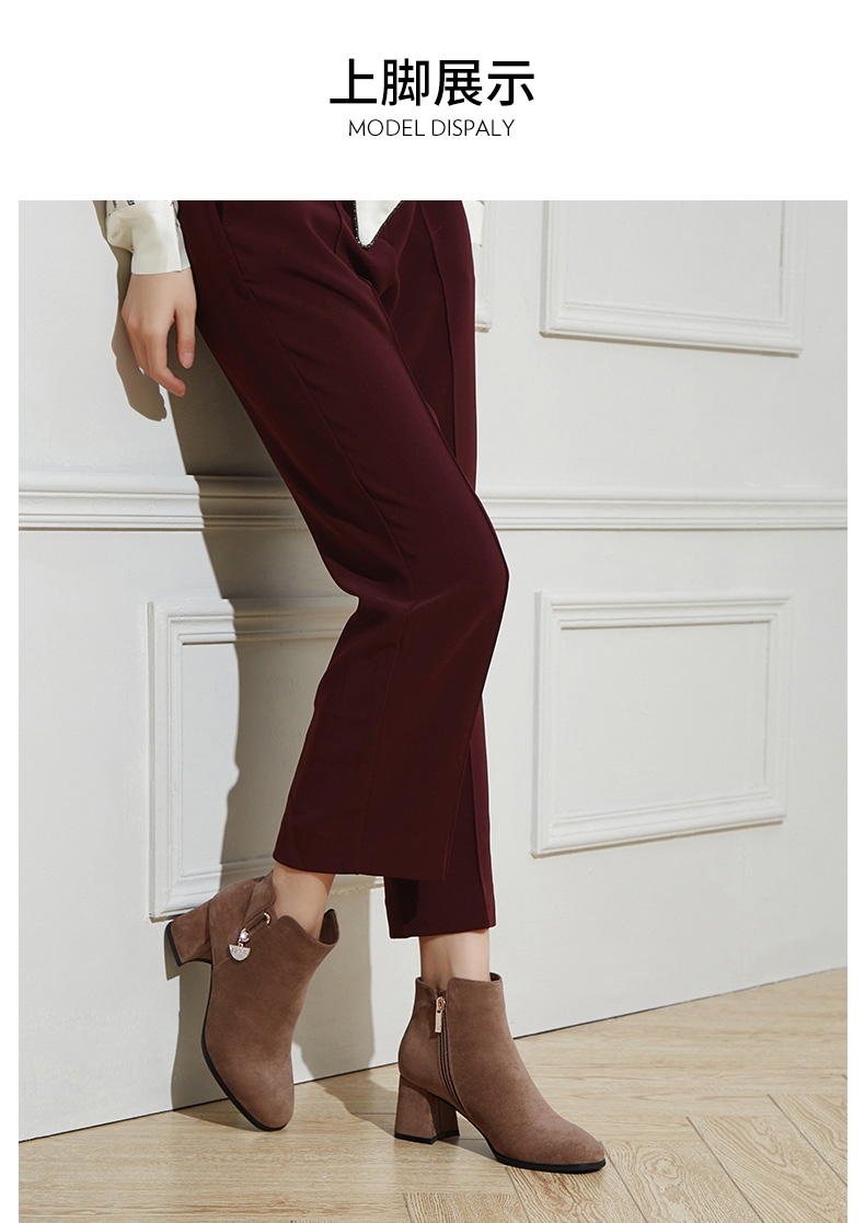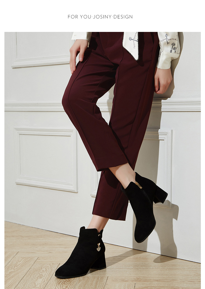 卓诗尼2019冬季新款女靴时尚百搭时装靴休闲方头通勤高跟短筒靴子