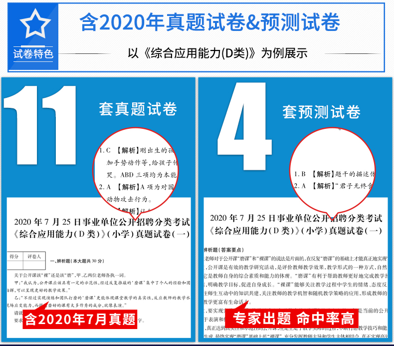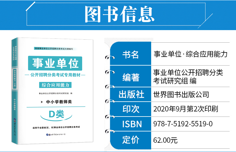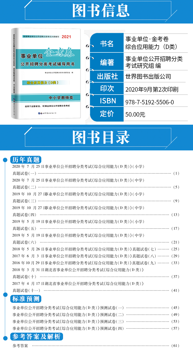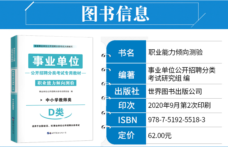 中小学教师d类教材历年真题试卷2020年事业单位编制考试用书职业能力倾向测验综合应用湖北贵州四川安徽青海内蒙古广西省教师招聘