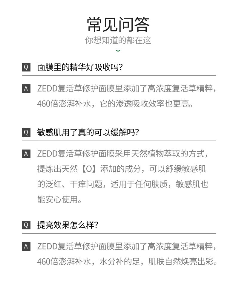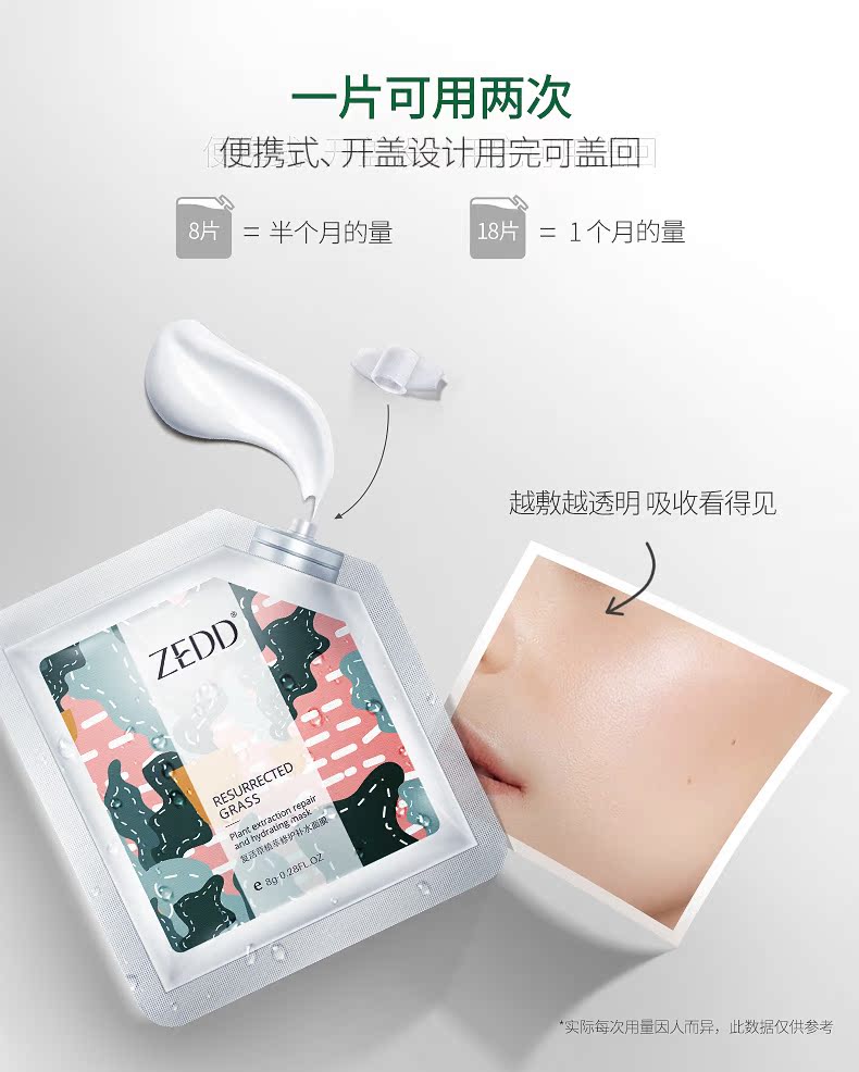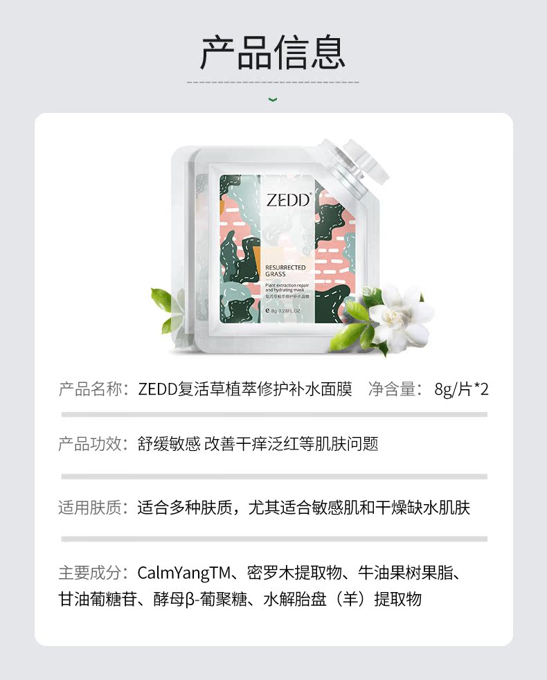 ZEDD复活草面膜补水保湿收缩毛孔紧致提亮敏感睡眠紧致涂抹式修护