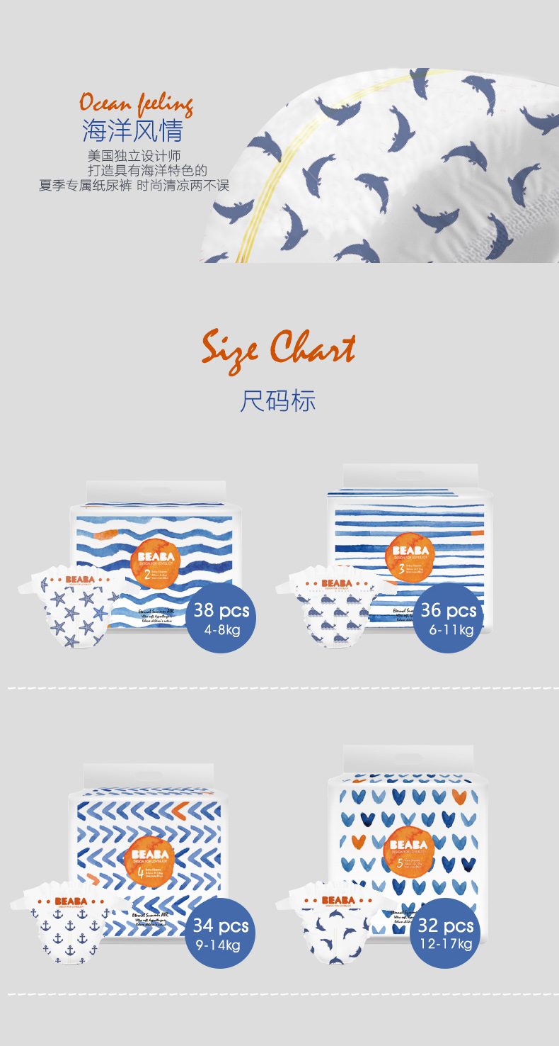 BEABA碧芭宝贝盛夏光年婴儿纸尿裤L34片尿不湿超薄透气夏宝干爽