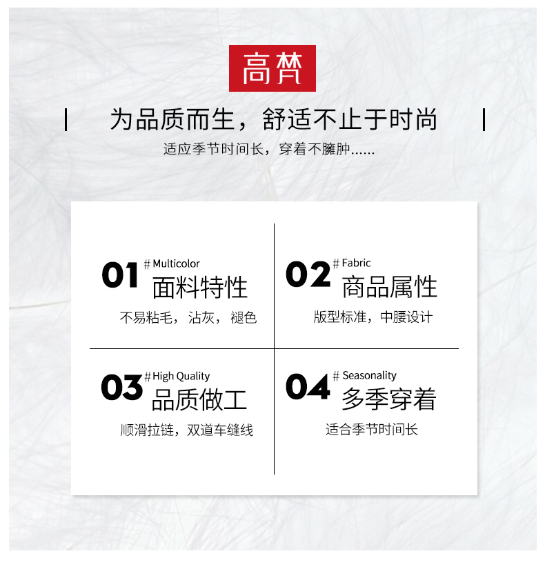【Goldfarm/高梵】高端面料!不粘毛、不沾灰、不褪色、耐磨抗皱,做工精细,顺滑拉链,双道车缝线,适合四季穿着,品质好裤!型男必备!【赠运费险】