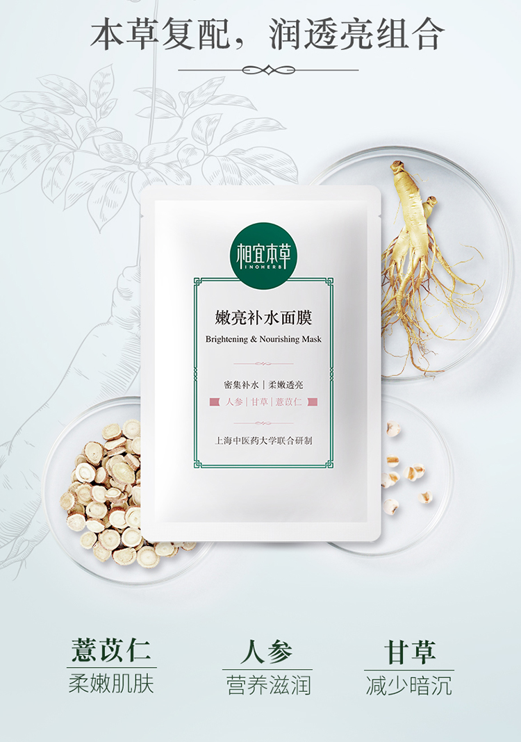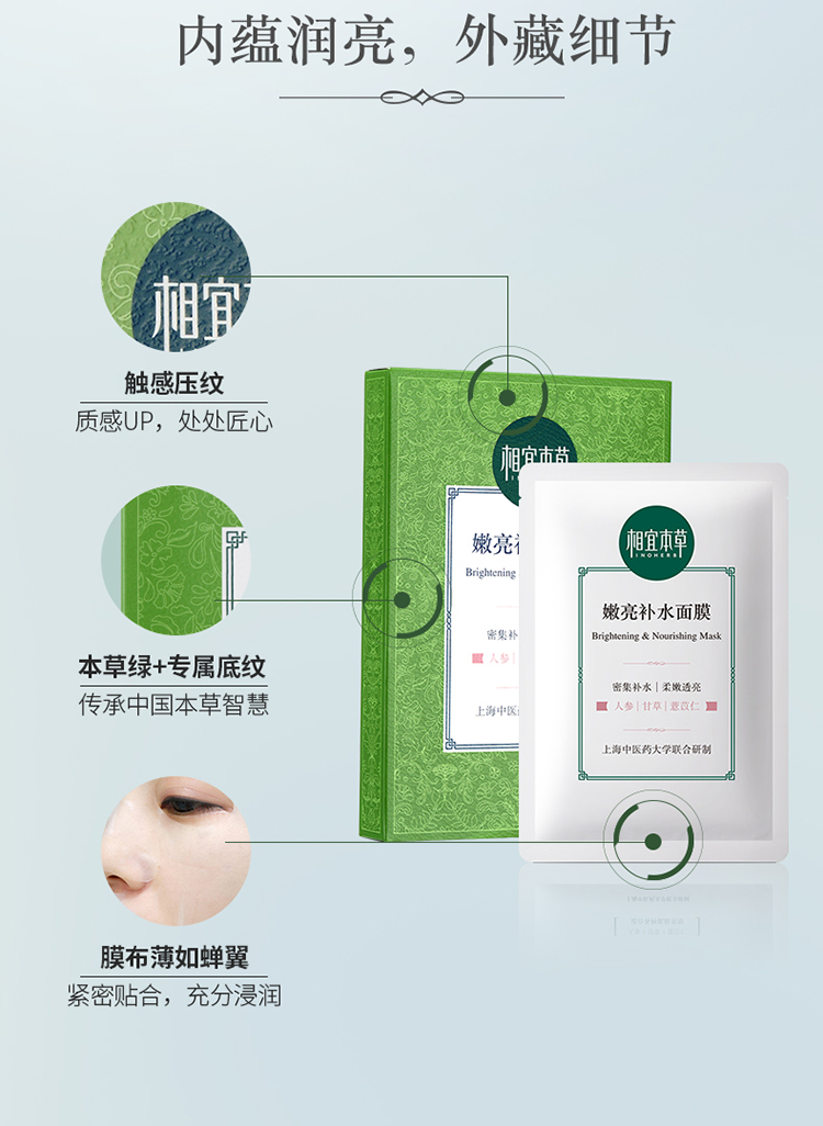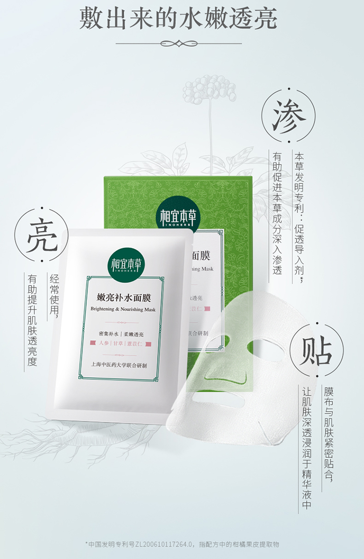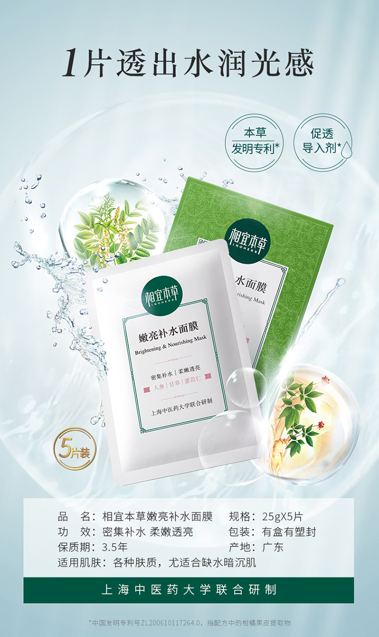 【5片装】【拍二送一】上海中医药大学联合研制,正宗国货相宜本草补水保湿面膜,嫩亮补水,密集滋养,本草复配,润透亮组合,一片透出水润光感!解决你经常熬夜晚睡导致皮肤不好的问题!【赠运费险】