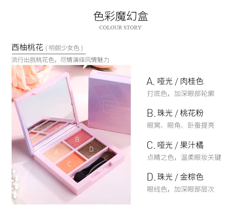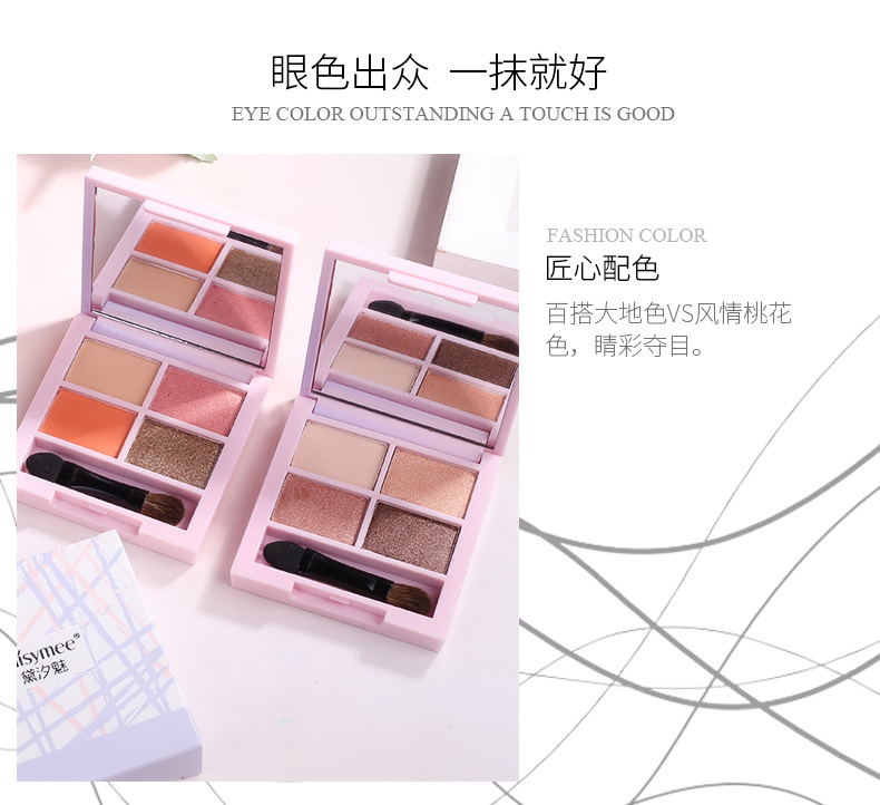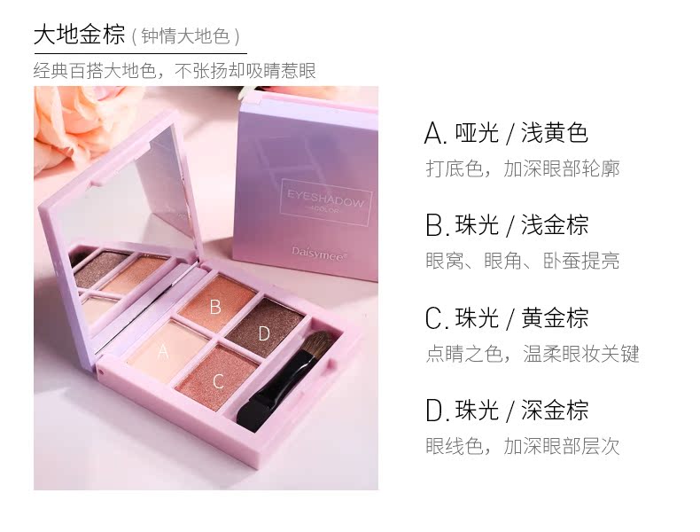 黛汐魅四色眼影裸色哑光初学者眼影盘珠光大地色少女系