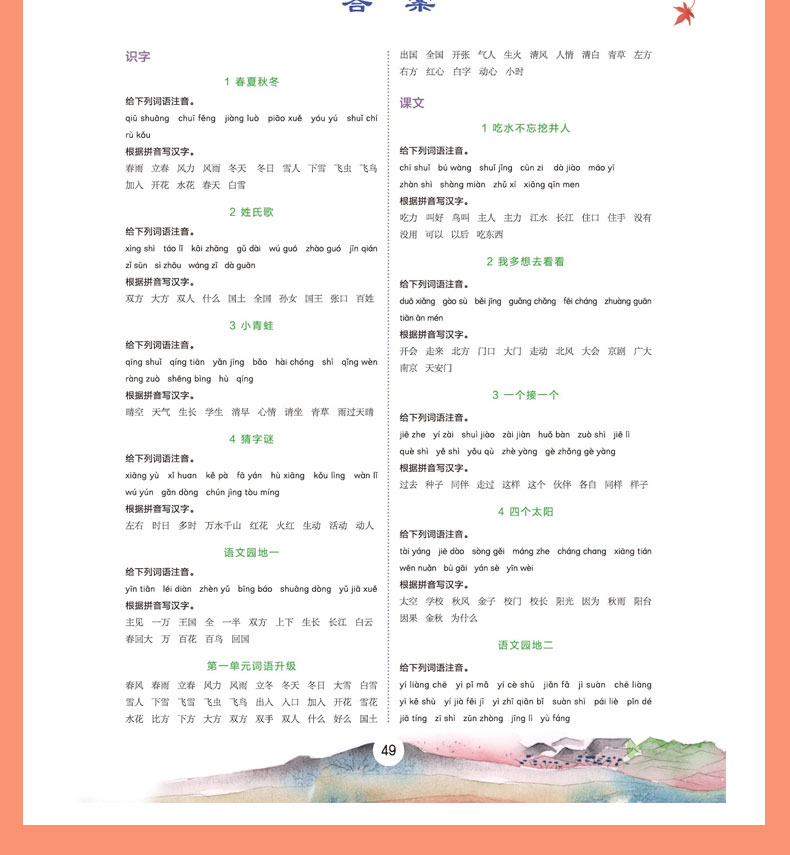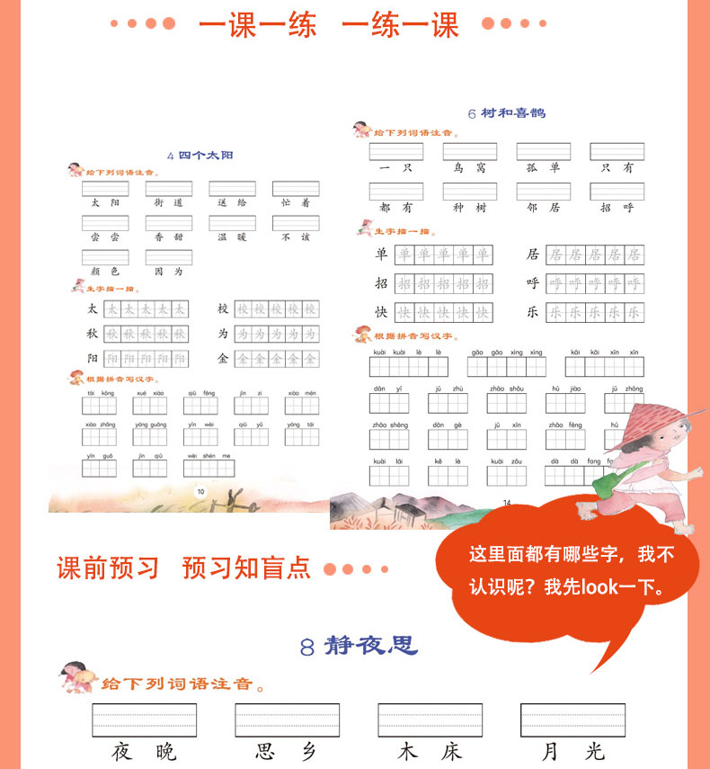 上下册任选发一本,人教部编版,与教材同步,彩绘版,涵盖汉语/拼音/识字,生字注音,课堂同步,一课一练,附答案,课后练习,巩固知识,适合一年级下册使用!