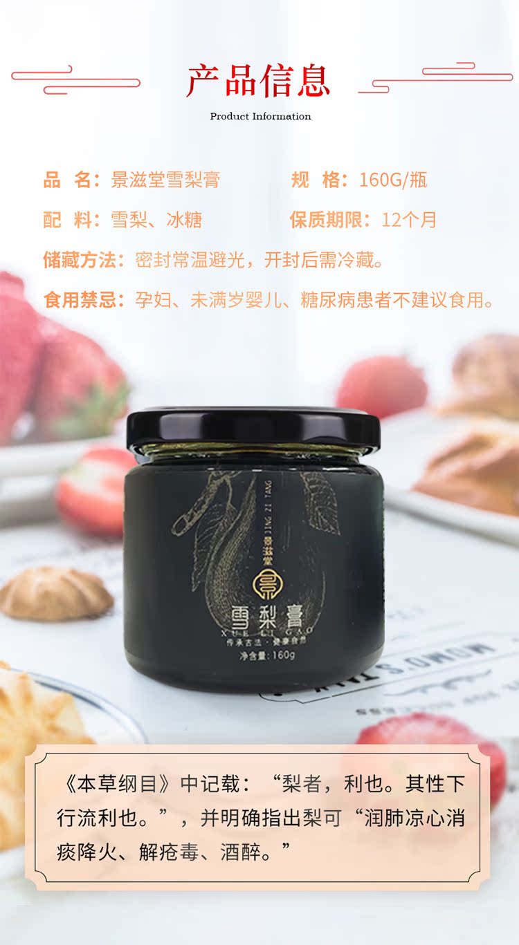 景滋堂秋梨膏藏冰糖雪梨儿童老人宝宝润喉痰化金川雪梨膏无添加