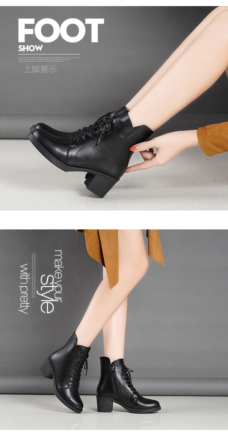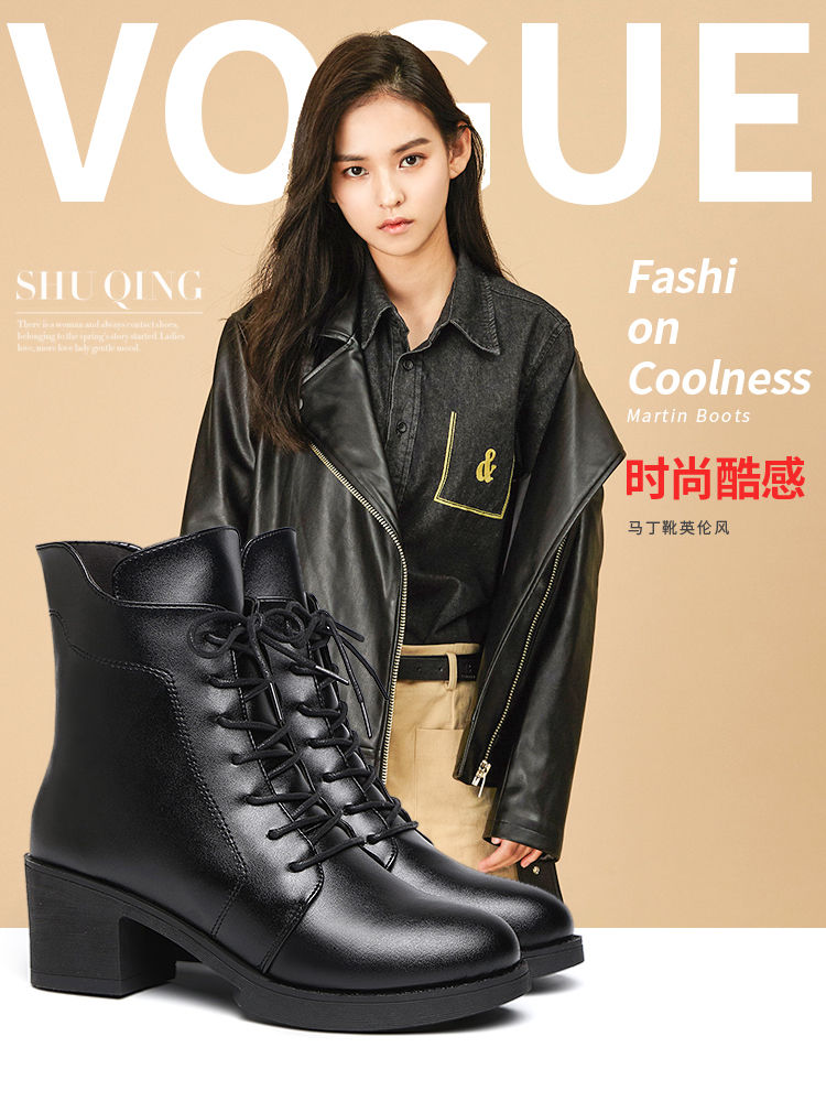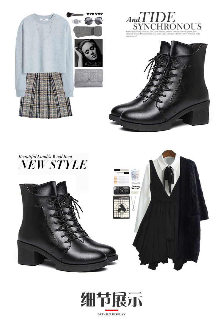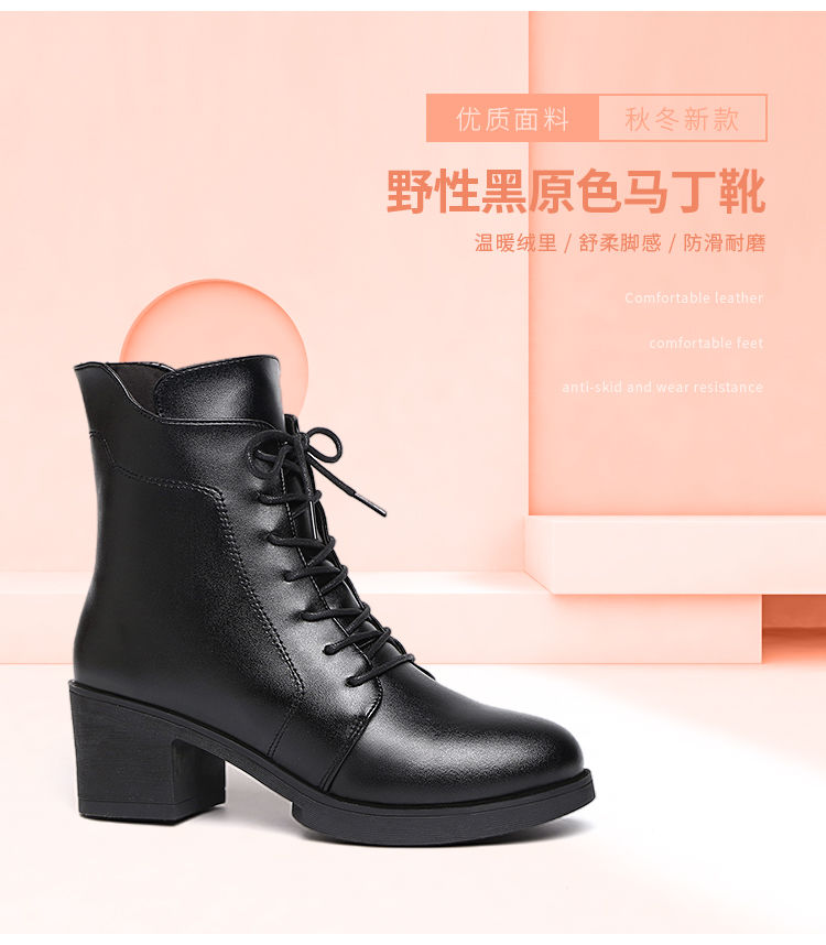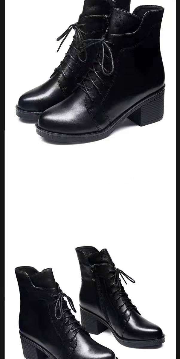 马丁靴女2019新款秋冬季高跟粗跟短靴女系带加绒皮面鞋瘦瘦棉靴子