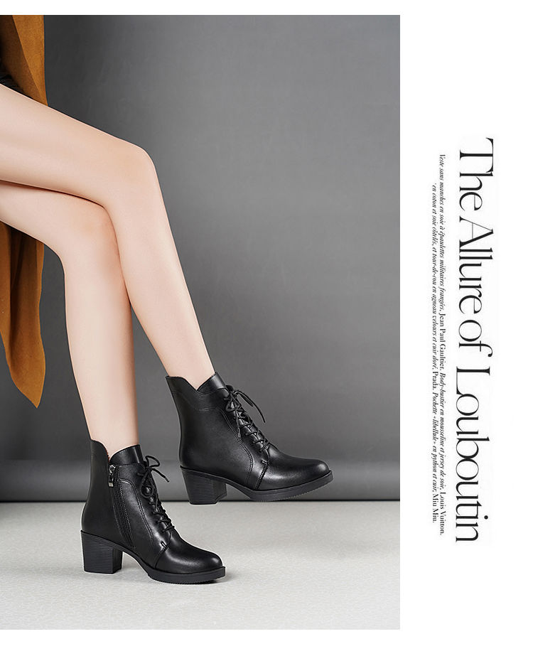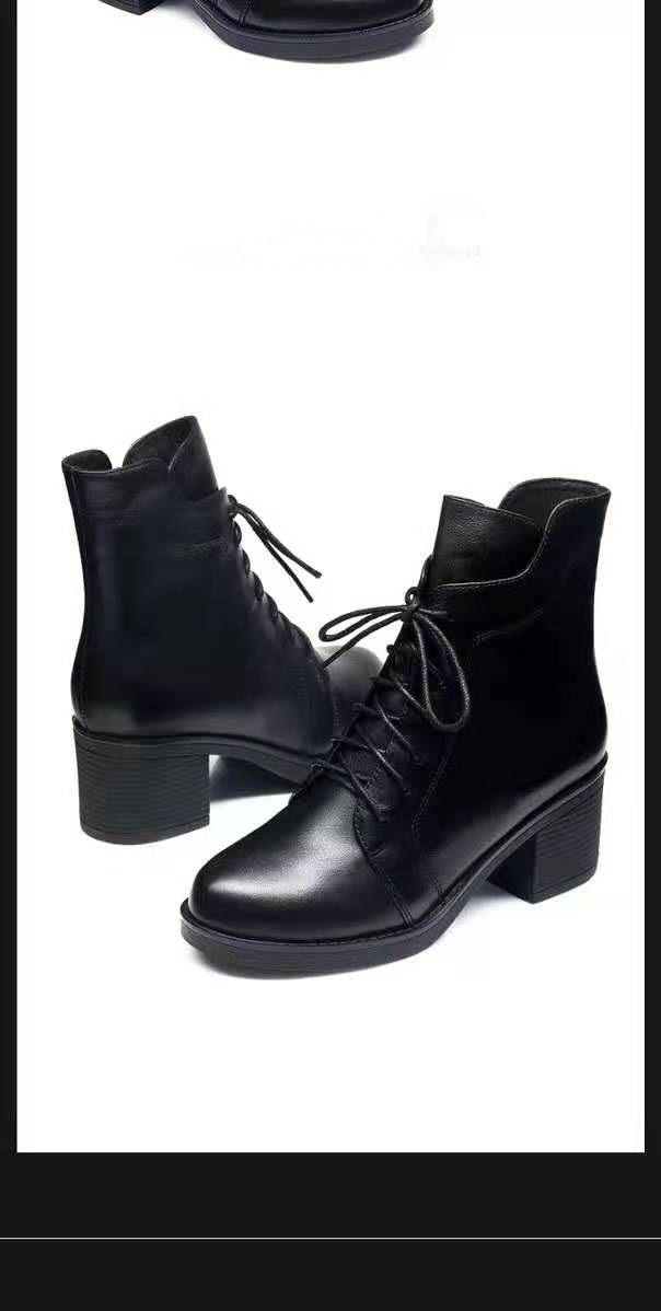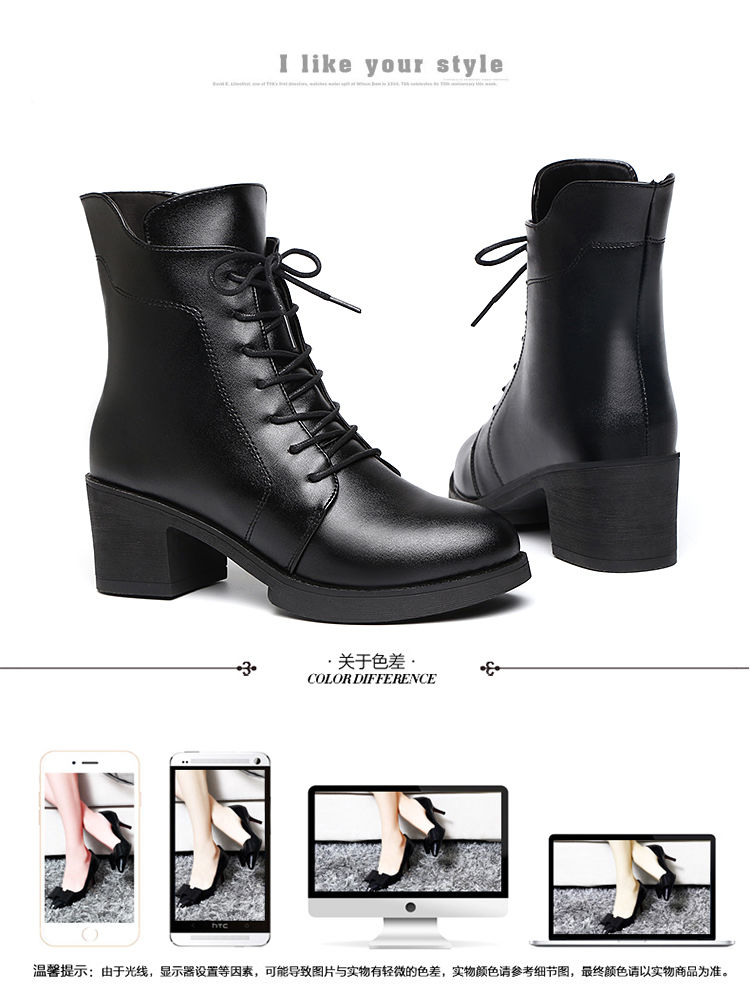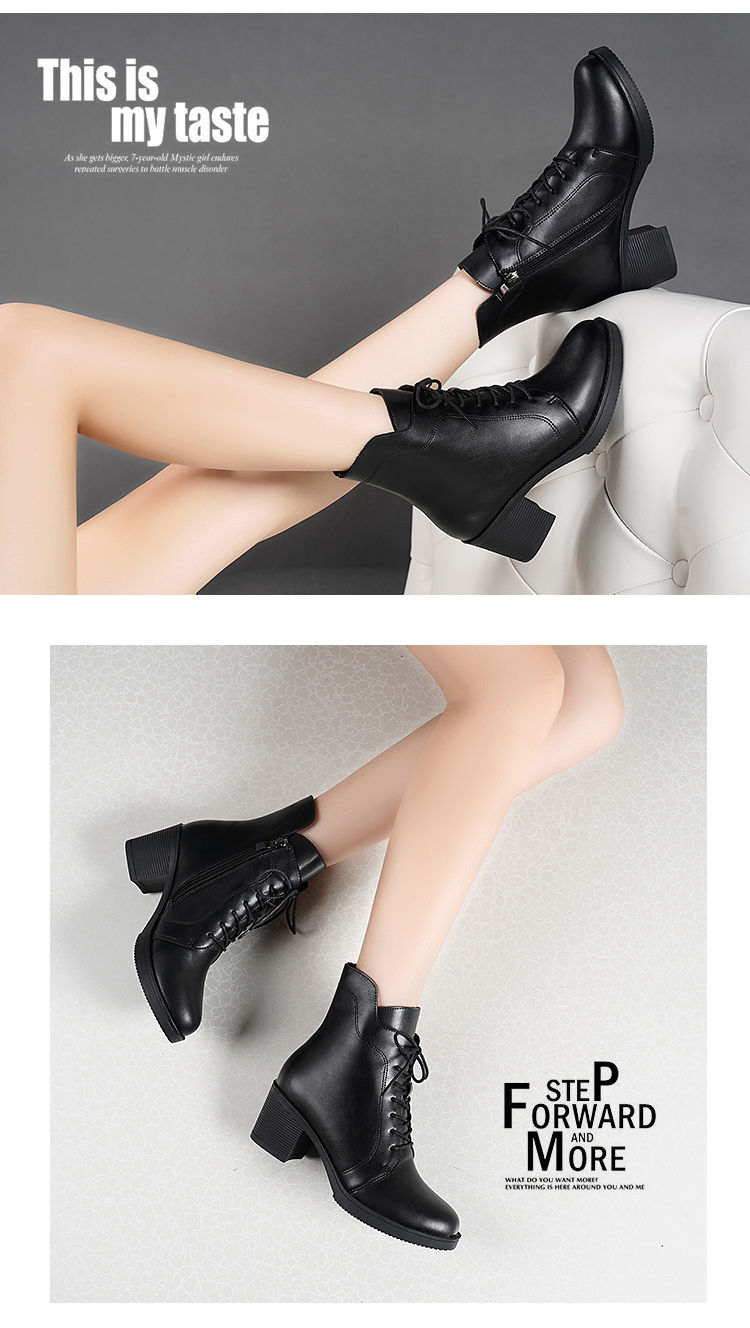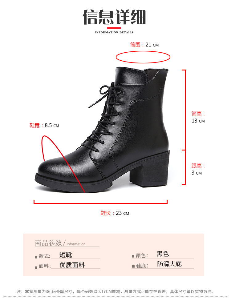 马丁靴女2019新款秋冬季高跟粗跟短靴女系带加绒皮面鞋瘦瘦棉靴子
