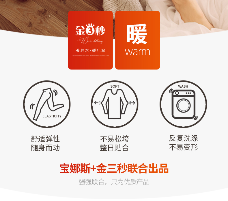 宝娜斯1985金3秒速热保暖内衣37度恒温自发热纤维秋衣秋裤套装女