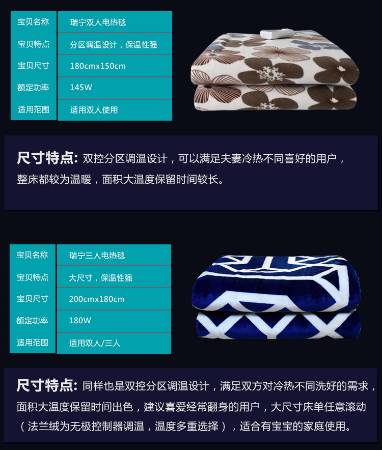 健康防辐射,有的款式分区控温。深层除螨,毯面防水,无需担心。加厚毯面,柔软亲肤,保暖整个冬天。【赠运费险】