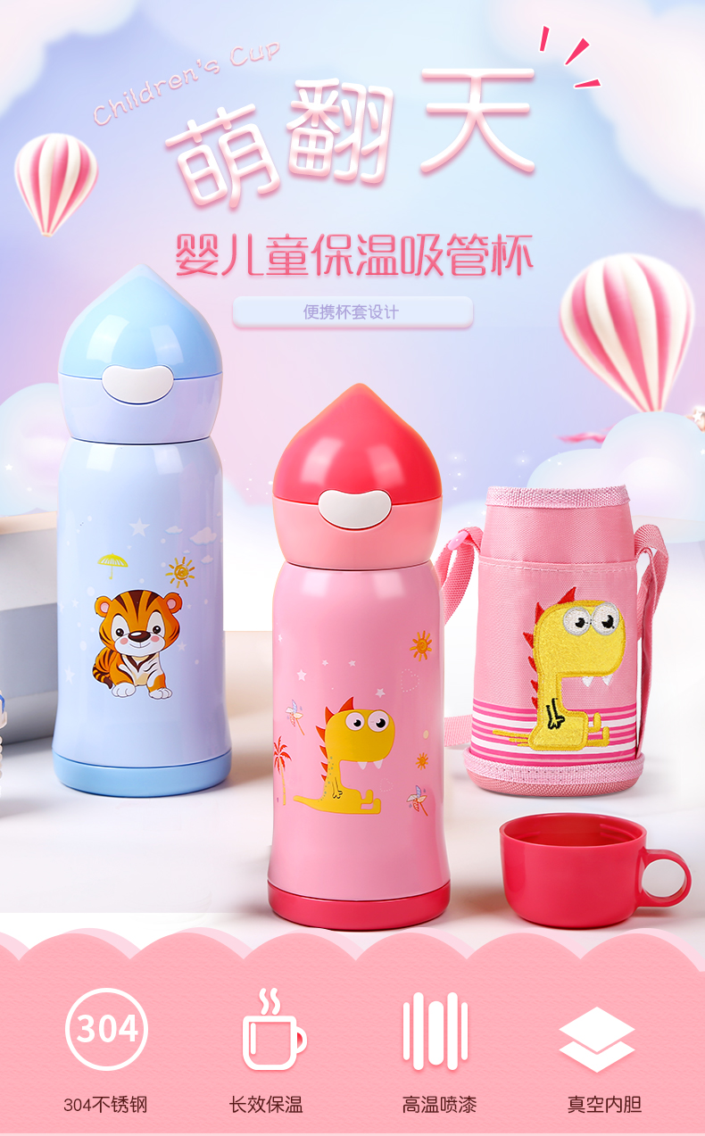 天使贝贝婴儿童保温杯带吸管杯两用宝宝男女小学生幼儿园水壶水杯