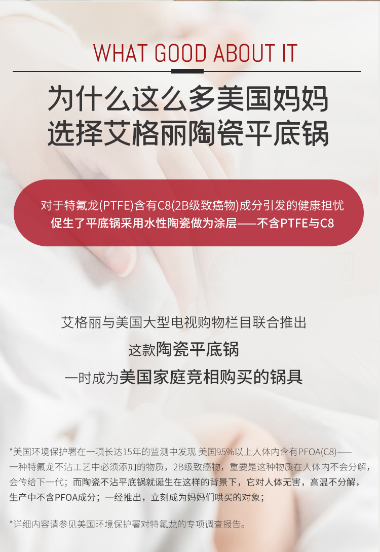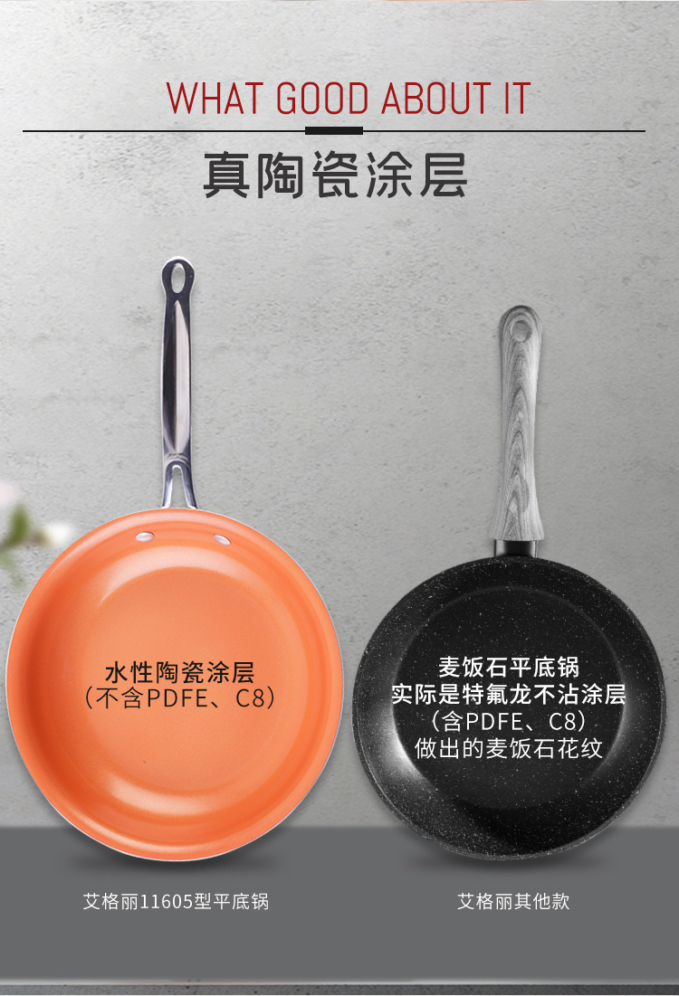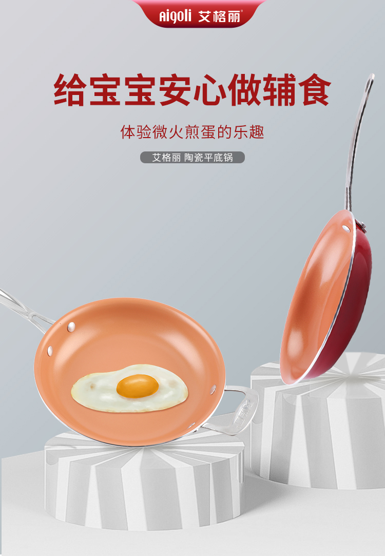 艾格丽陶瓷平底锅电磁炉燃气专用锅气电两用复底锅家用宝宝辅食锅