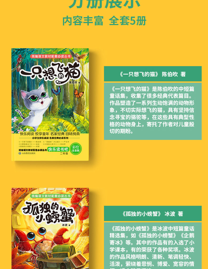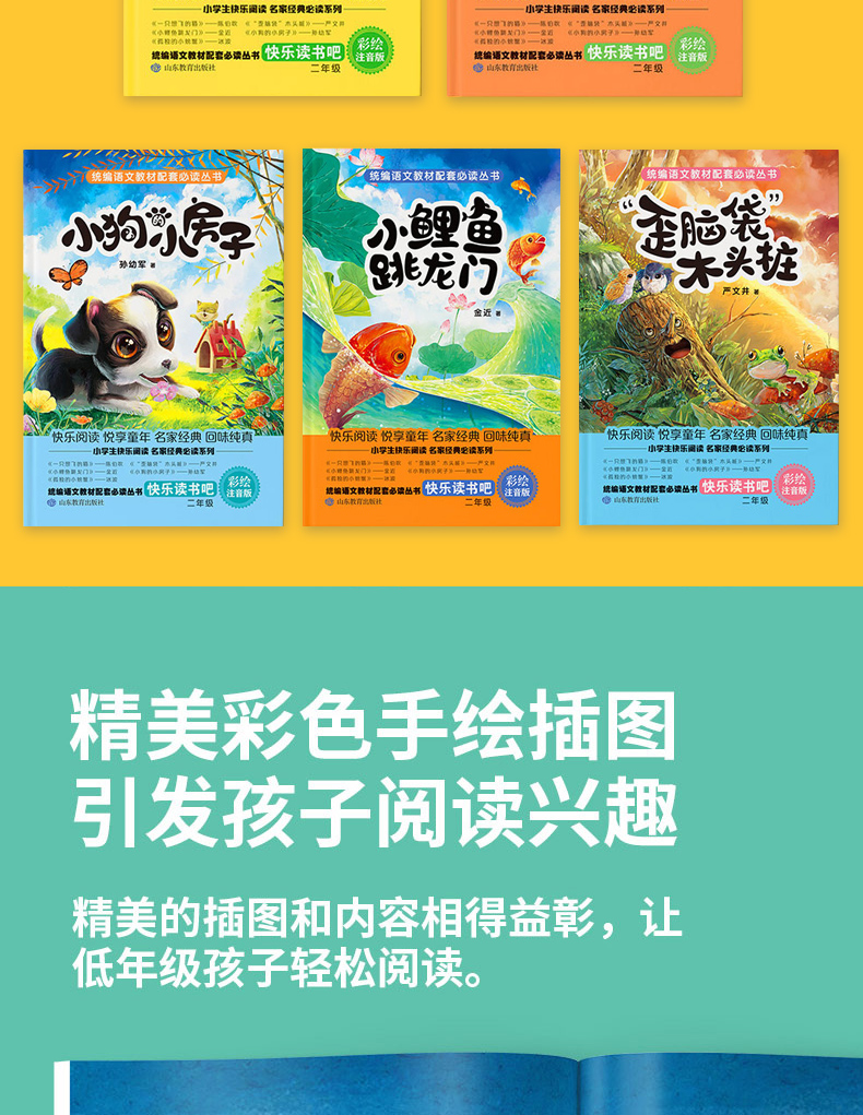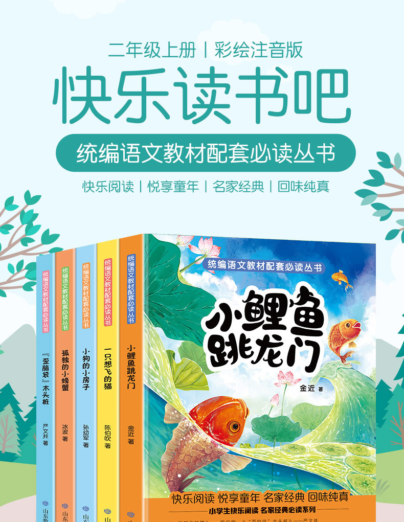 正版 快乐读书吧二年级 小鲤鱼跳龙门 孤独的小螃蟹 小狗的新房子 一只想飞的猫 语文教材二年级必读歪脑袋 二年级课外书必读 TLS