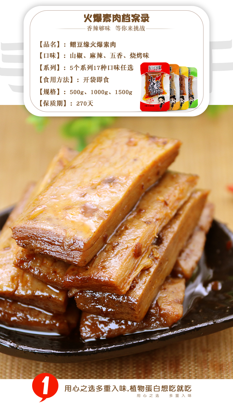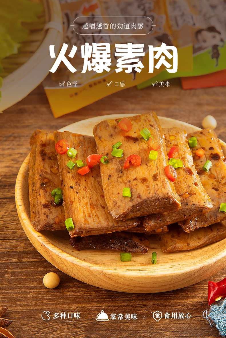 【拍2件50包】长不胖的素肉,口感劲道,香辣有味,比豆干好吃,比辣条更多嚼劲!