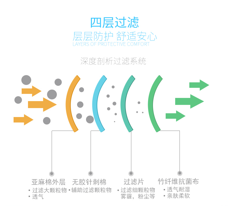优质材料工艺,舒适不勒耳设计,强效过滤防霾过滤口罩,抑制有害细菌,防灰尘无异味自由呼吸,尽显V脸,潮流百搭