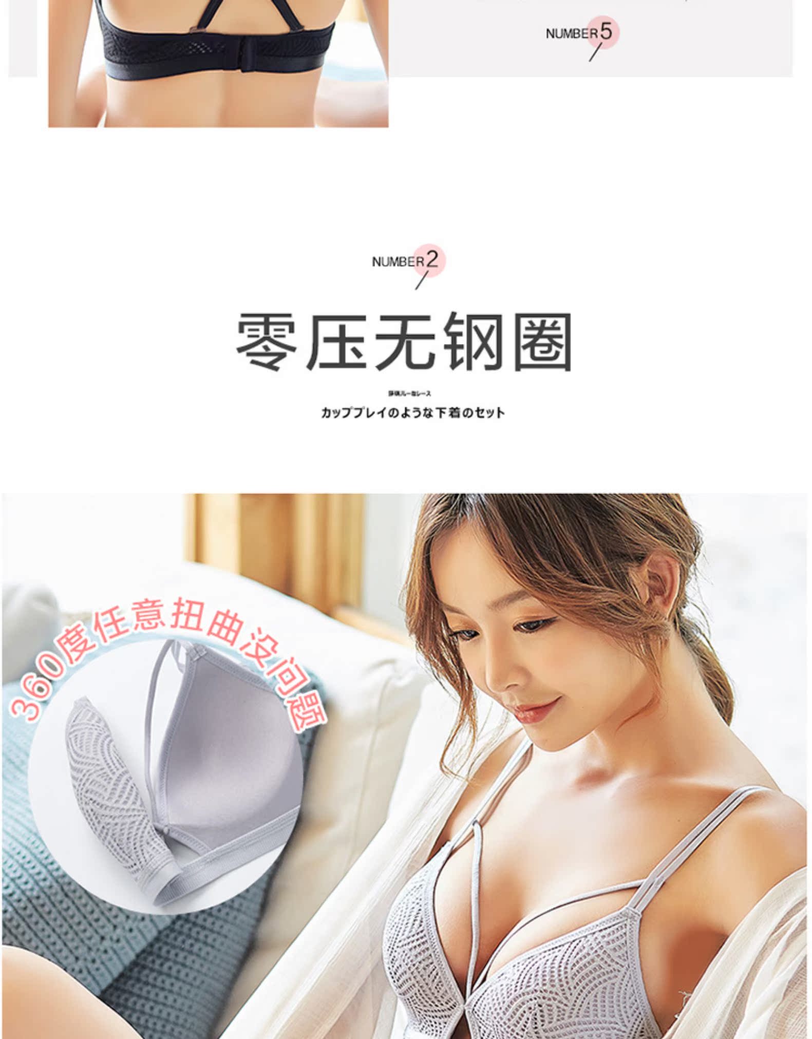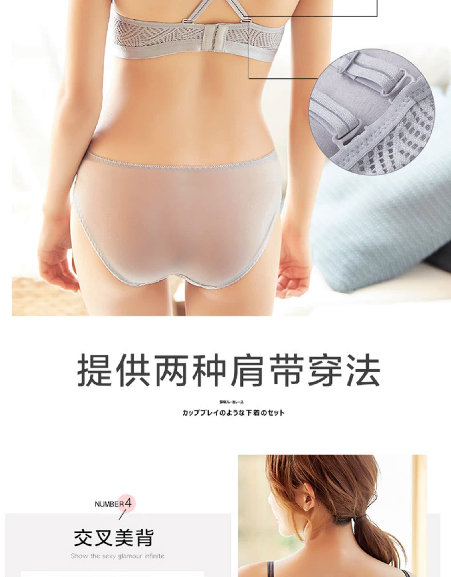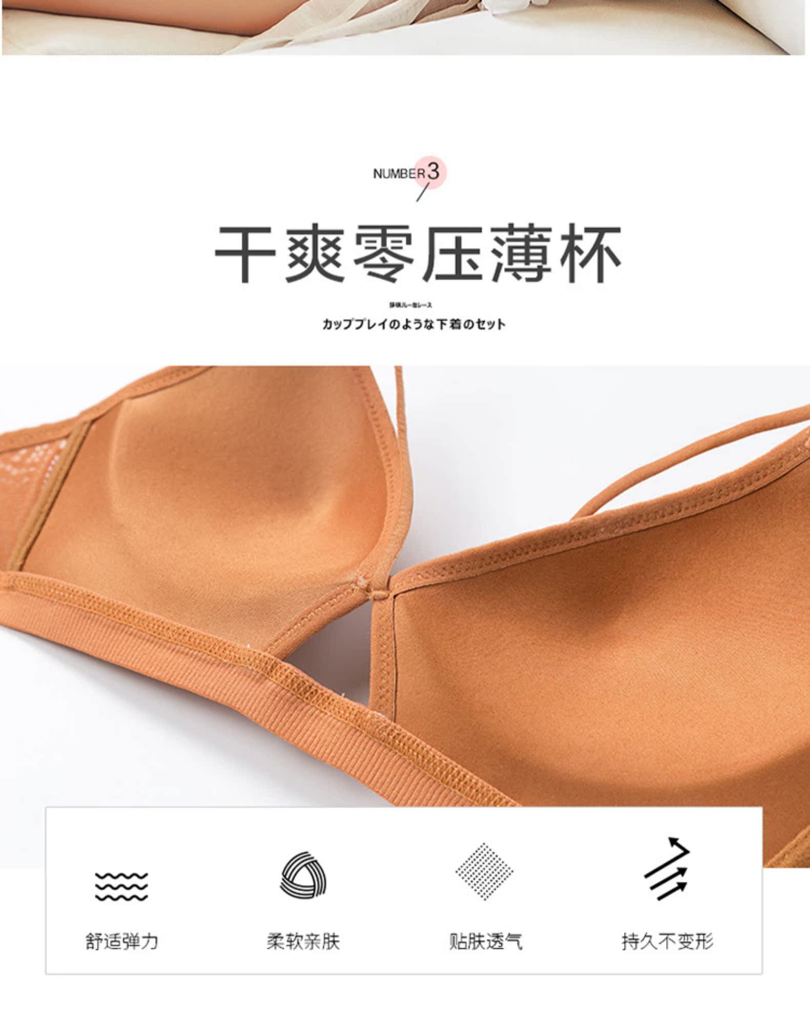 少女内衣套装聚拢无钢圈文胸性感蕾丝美背薄款小胸罩收副乳防下垂