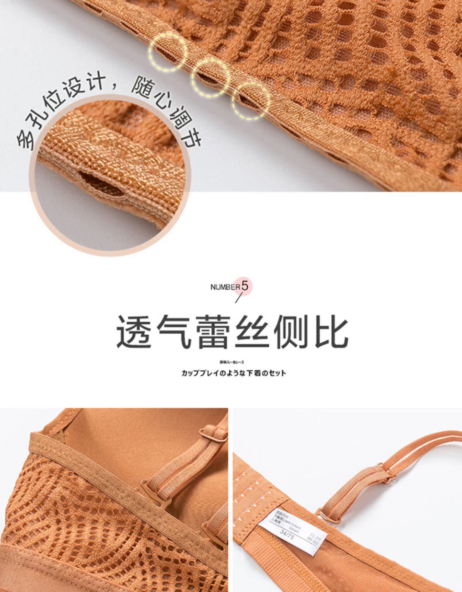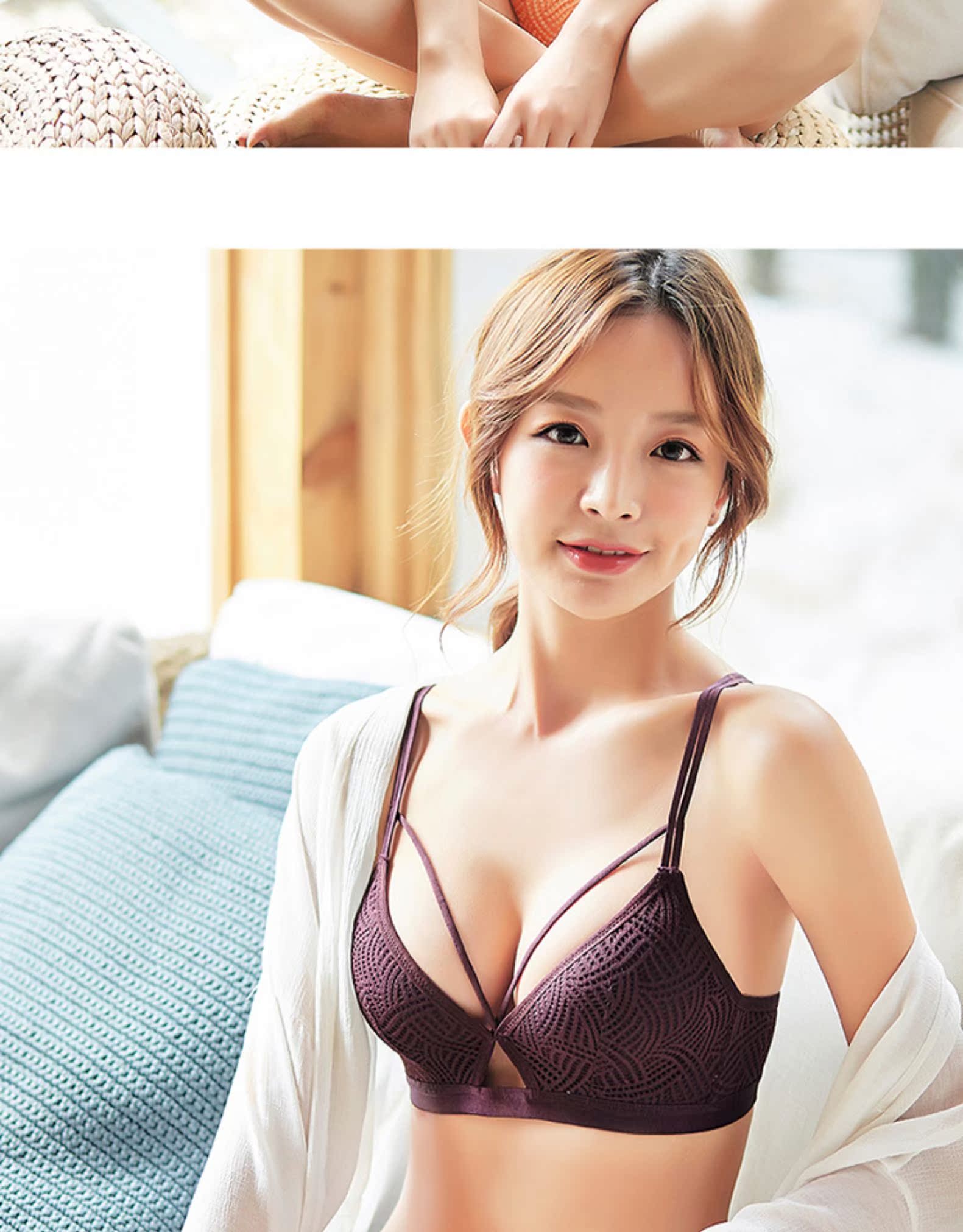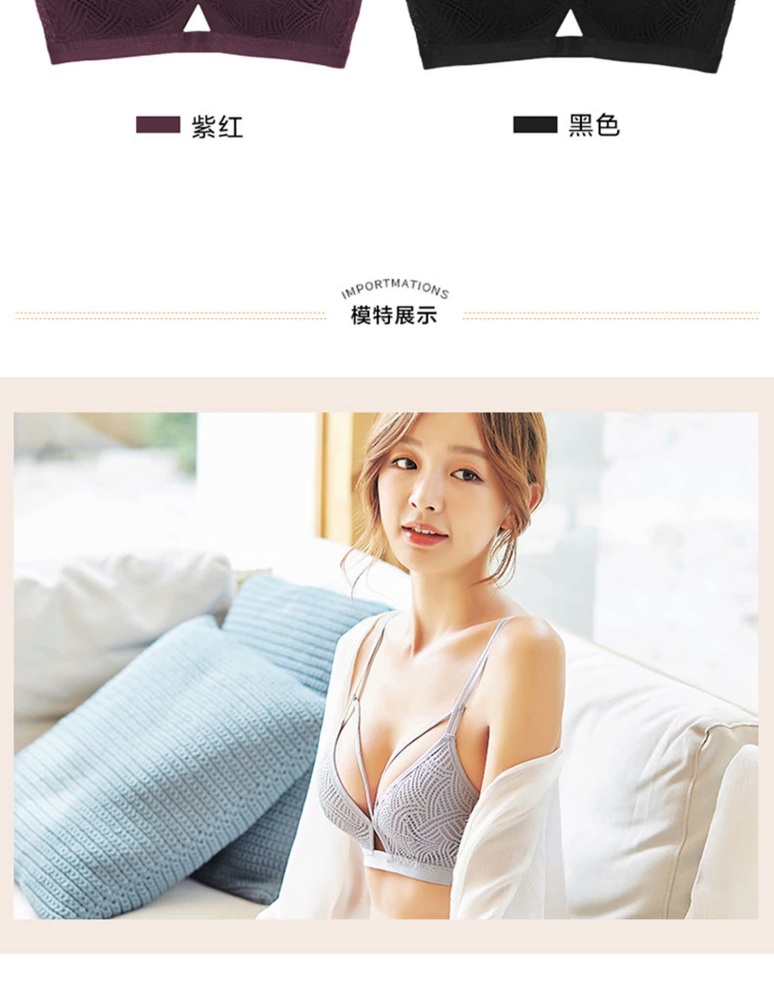 少女内衣套装聚拢无钢圈文胸性感蕾丝美背薄款小胸罩收副乳防下垂