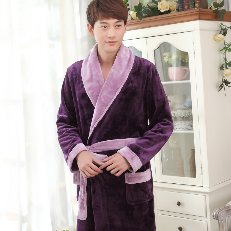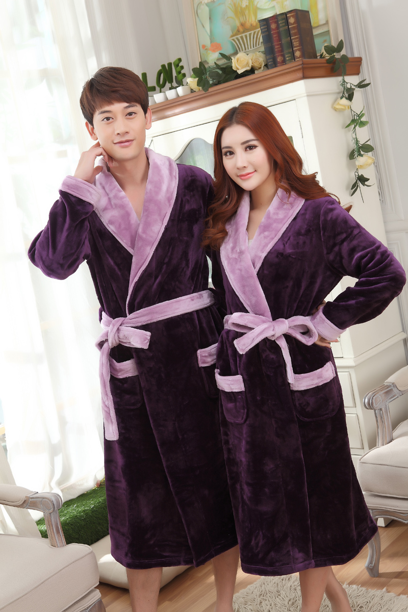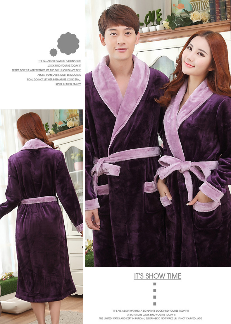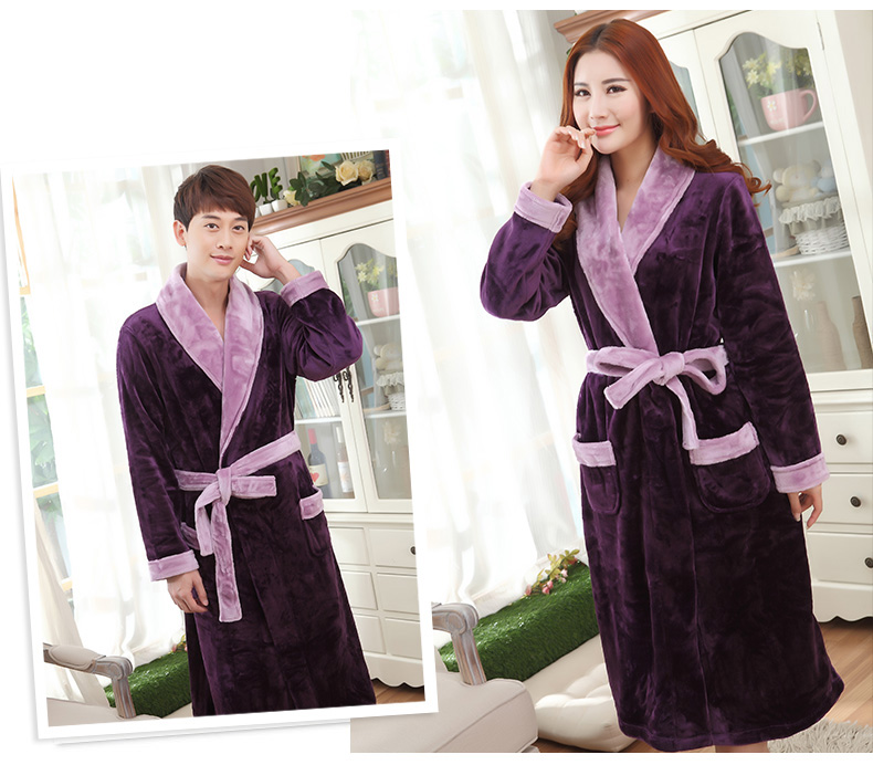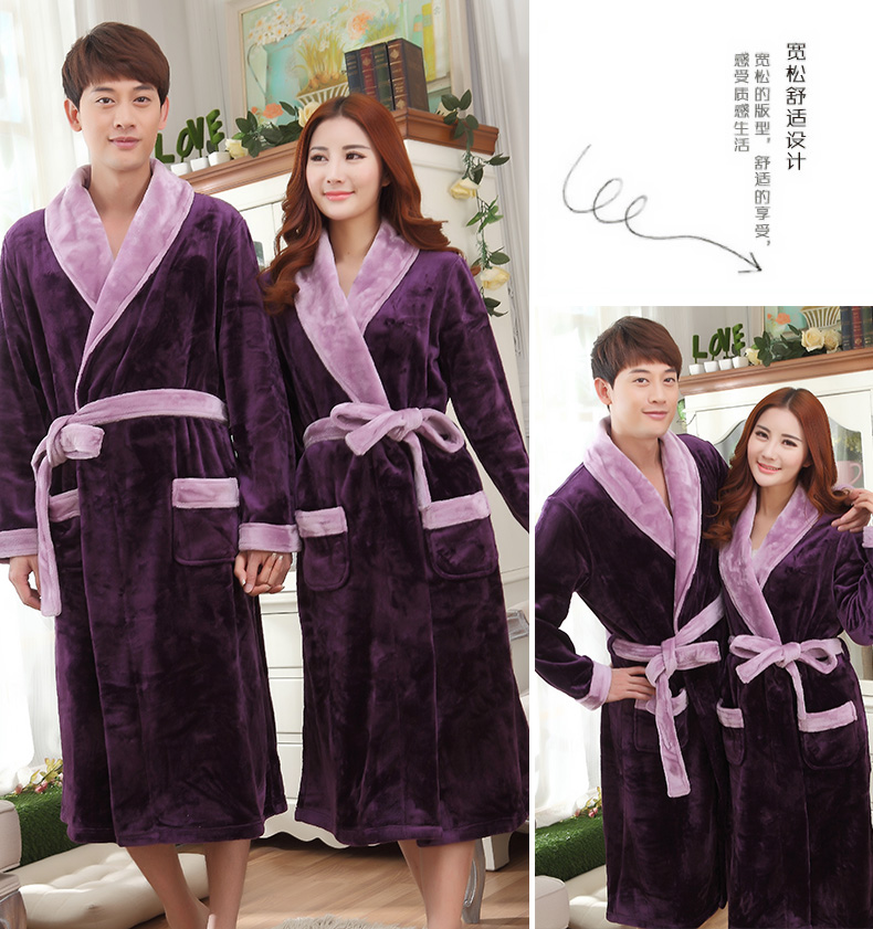 秋冬季珊瑚绒睡袍女加厚保暖法兰绒浴袍男睡衣家居服浴衣长款晨袍