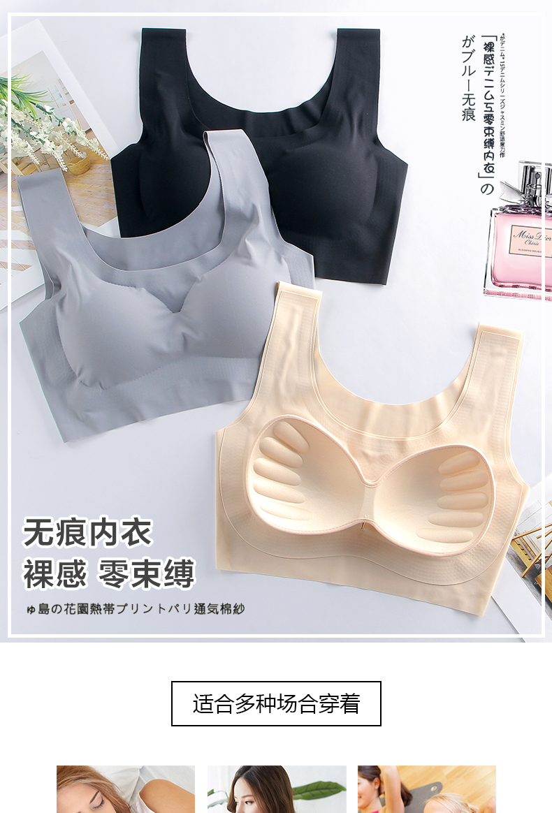 日本无痕薄款内衣少女学生文胸聚拢无钢圈运动防震跑步背心式抹胸