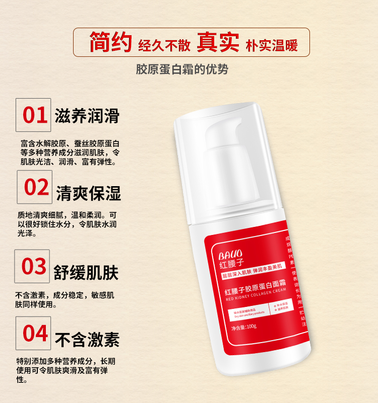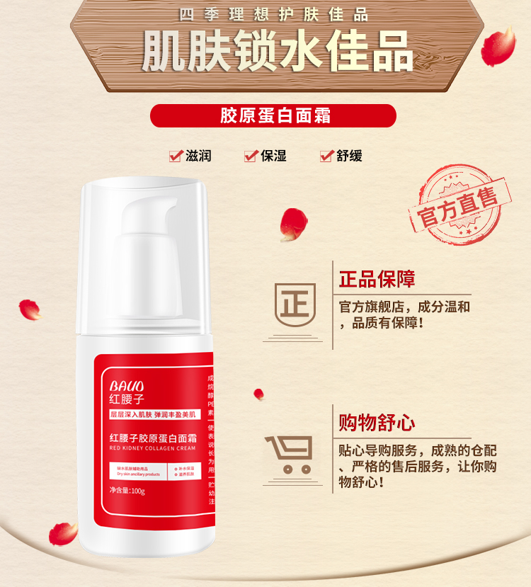 【拍3件,第2,3件0元】红腰子官方授权,胶原蛋白面霜,爱美女神冬季补水保湿必备,美白肌肤,让肌肤重返18岁,男女学生通用,【过敏无忧,赠运费险】