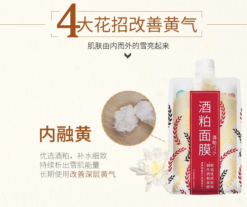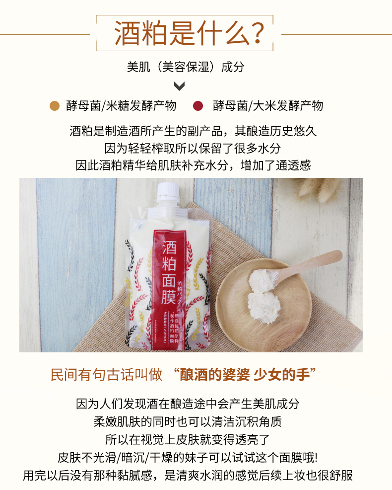 【3袋装再送维生素e乳100ml】火爆的酒粕面膜,淡淡的酒香味儿,质地很绵柔,收缩毛孔,提亮去角质,补水能力翻倍,改善肌肤暗沉无光,让肌肤白皙透亮,一用就爱上了!