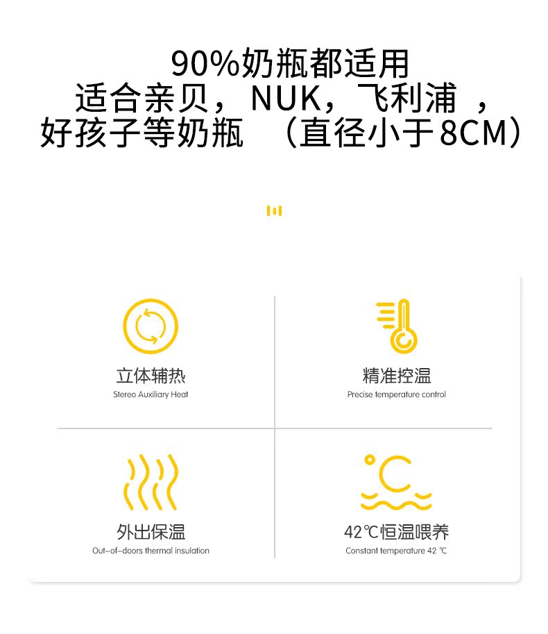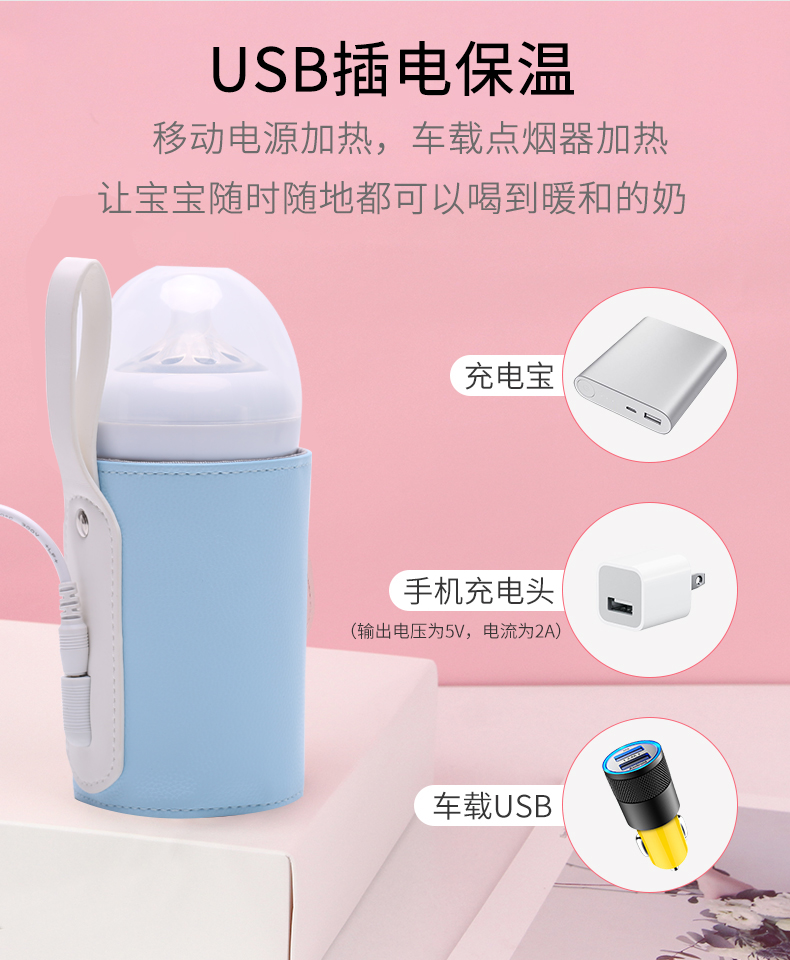 智能控温奶瓶加热保护套,双重三档控温开关,适用不同奶瓶,外出便携保温奶瓶包袋,车载温奶器,加热套usb通用,恒温42度,支持充电宝和车载USB,手机充电头,让宝宝随时随地喝到暖和的奶【赠运费险】