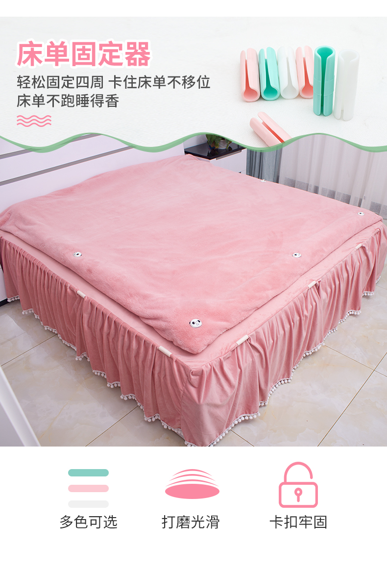 床单防滑防跑利器!玛萱尼床单固定扣,采用PP环保材质,卡扣牢固,不易移动,表面光滑,轻松固定四周,防止床单移动,每时每刻床单都平整如新!