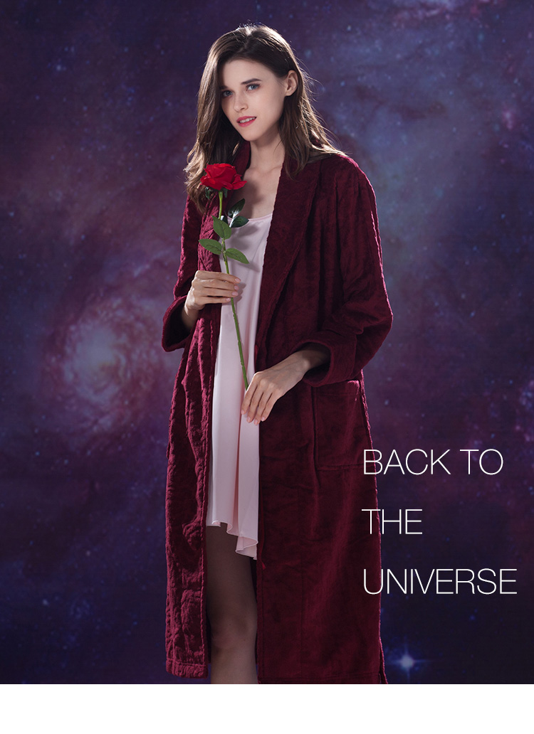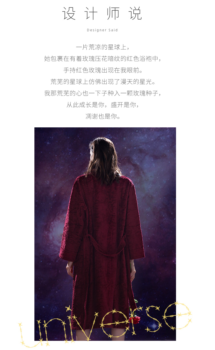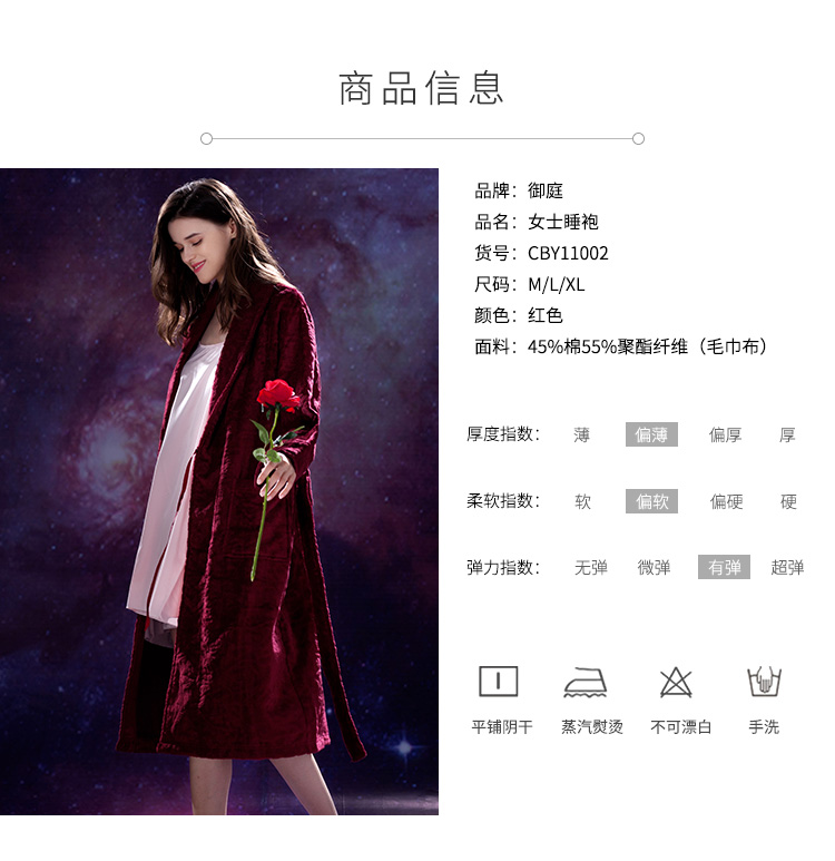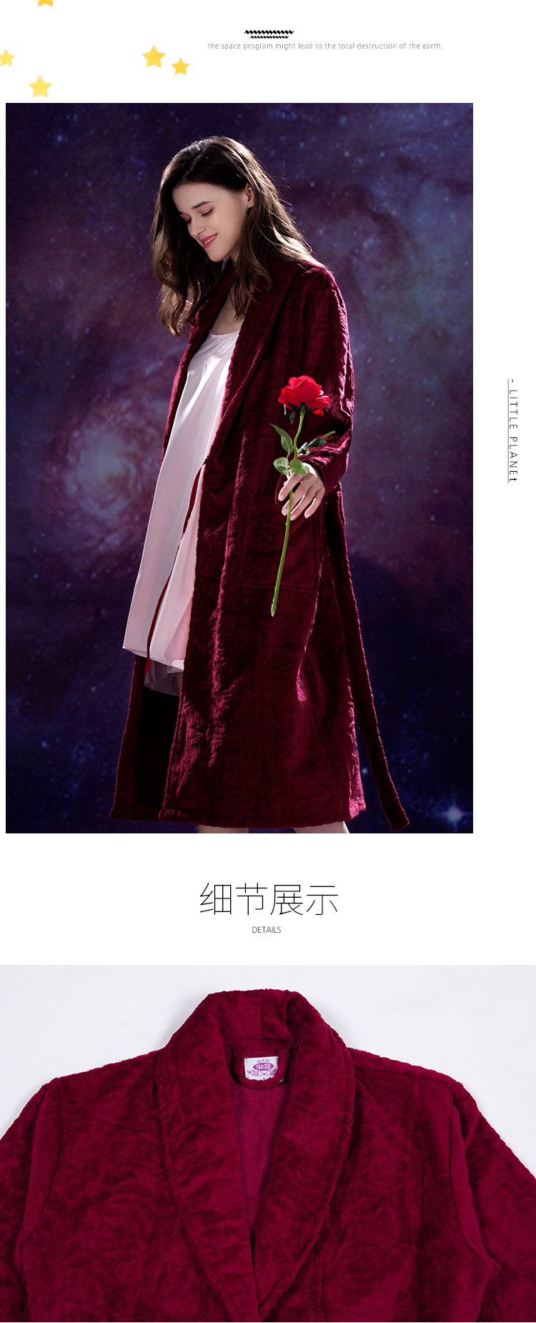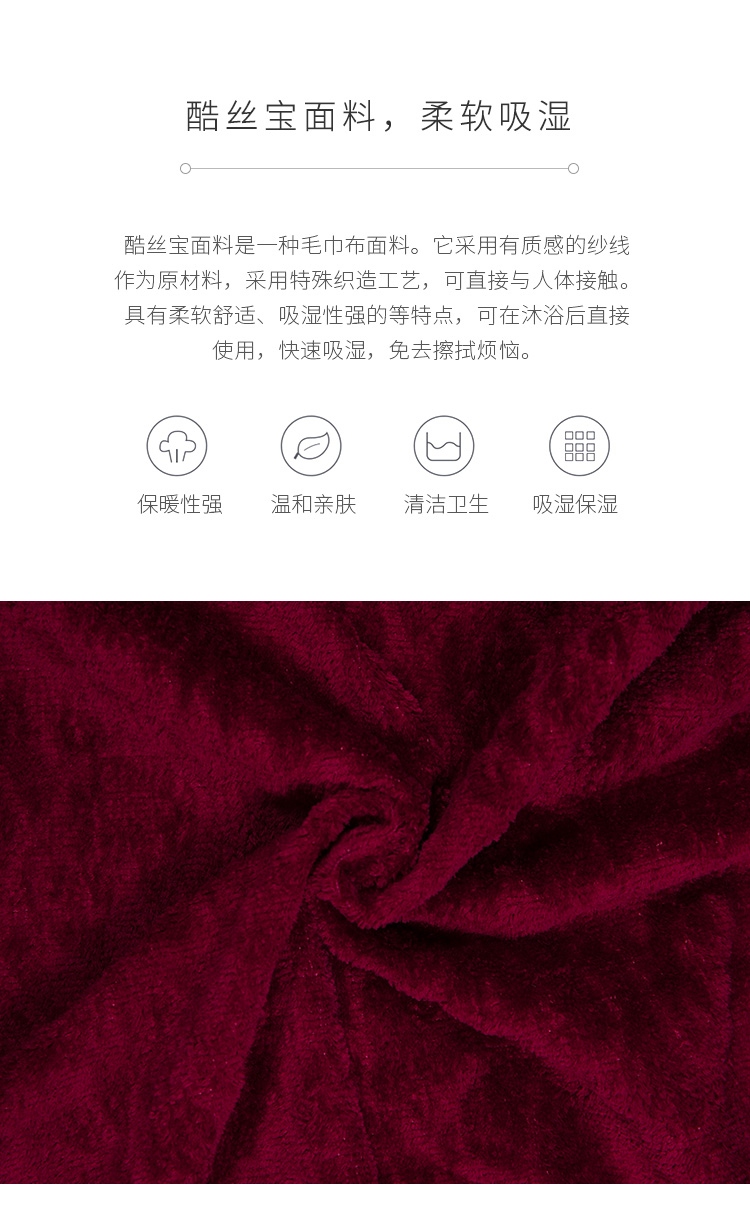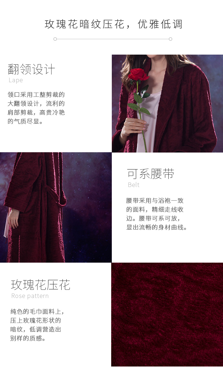 玫瑰压花花纹,毛巾料吸水,沐浴后直接穿,柔软吸湿,温和亲肤,优雅低调,可系腰带,居家好物。【赠运费险】
