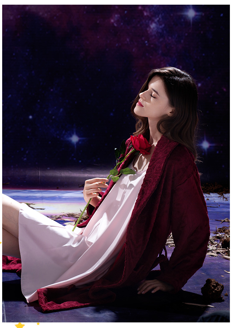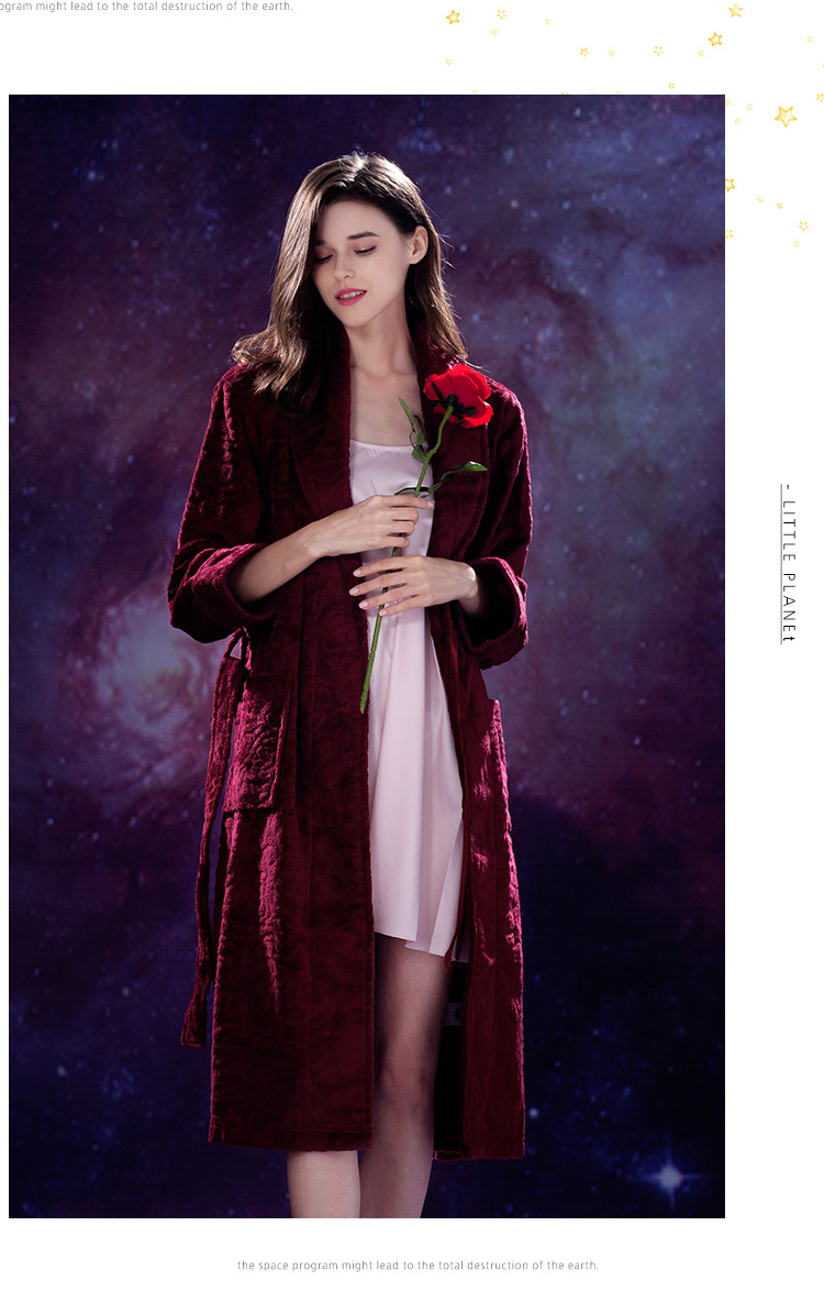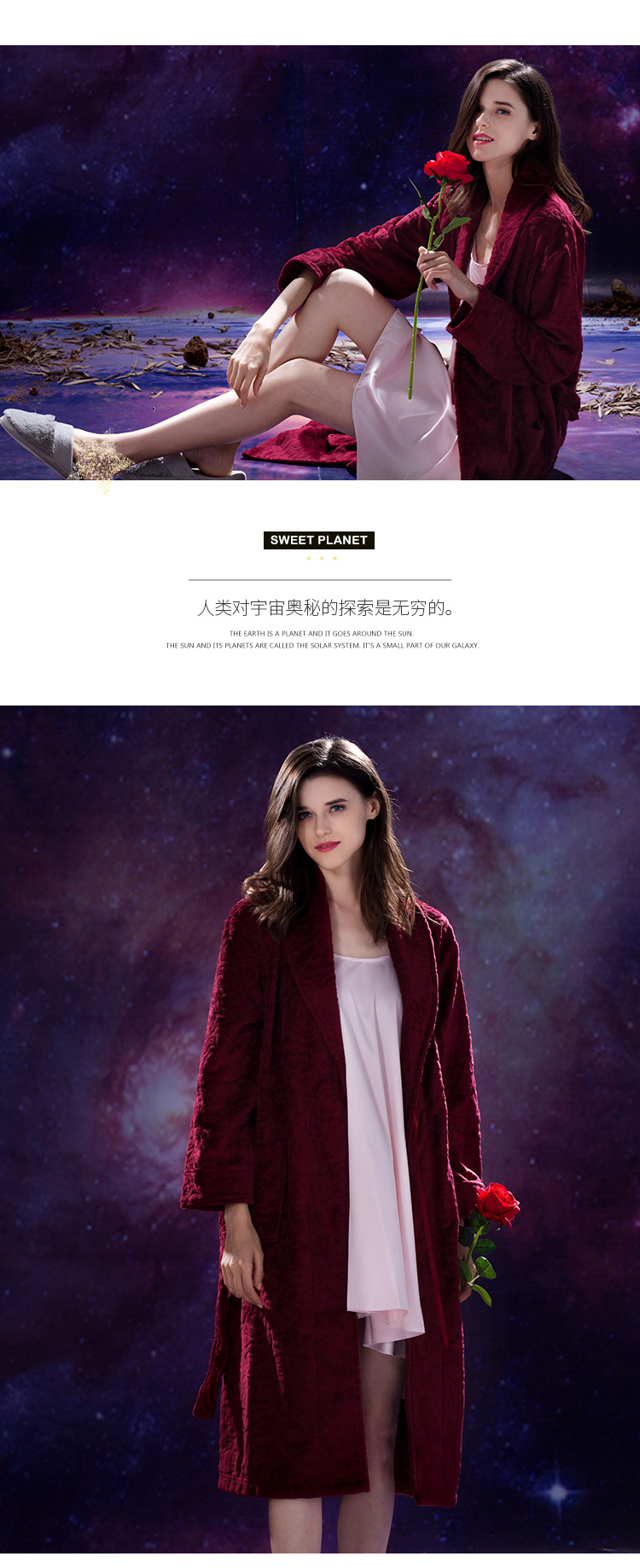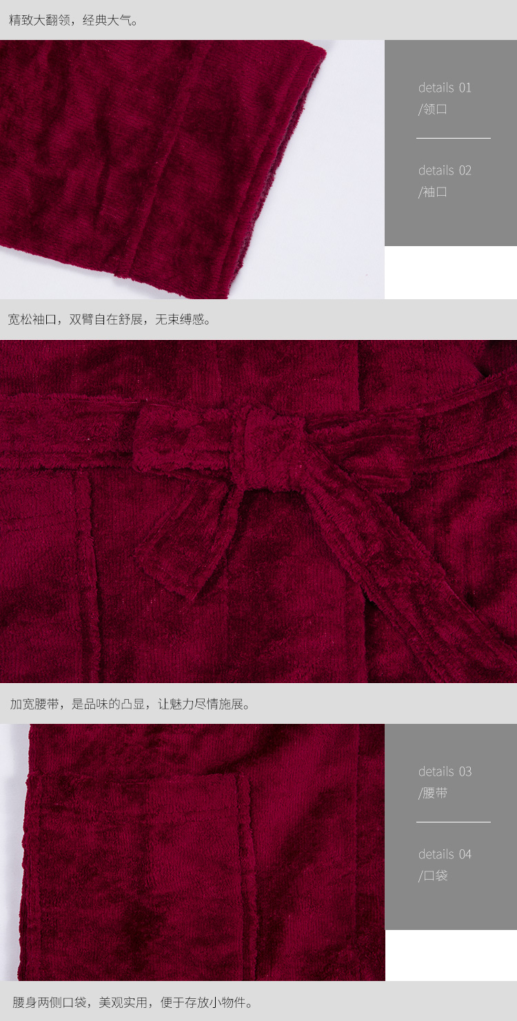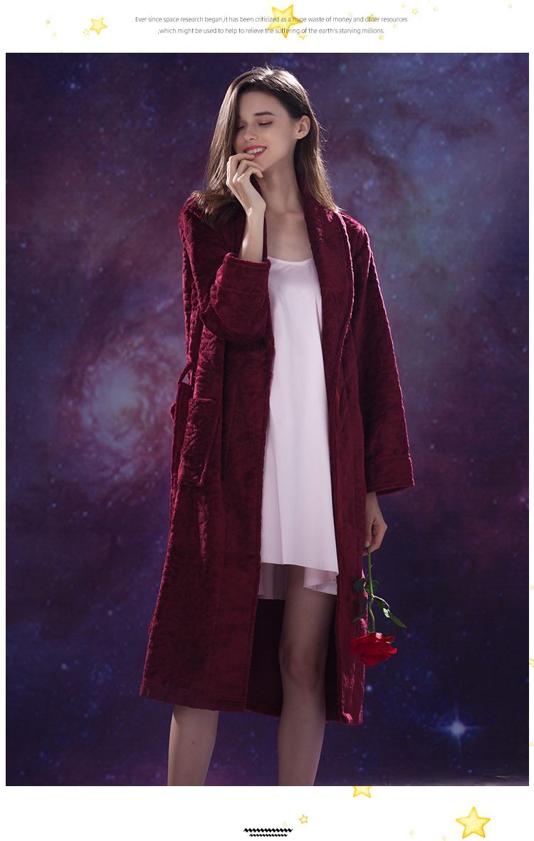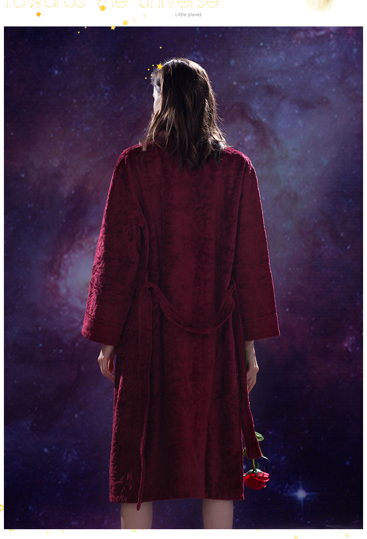 玫瑰压花花纹,毛巾料吸水,沐浴后直接穿,柔软吸湿,温和亲肤,优雅低调,可系腰带,居家好物。【赠运费险】