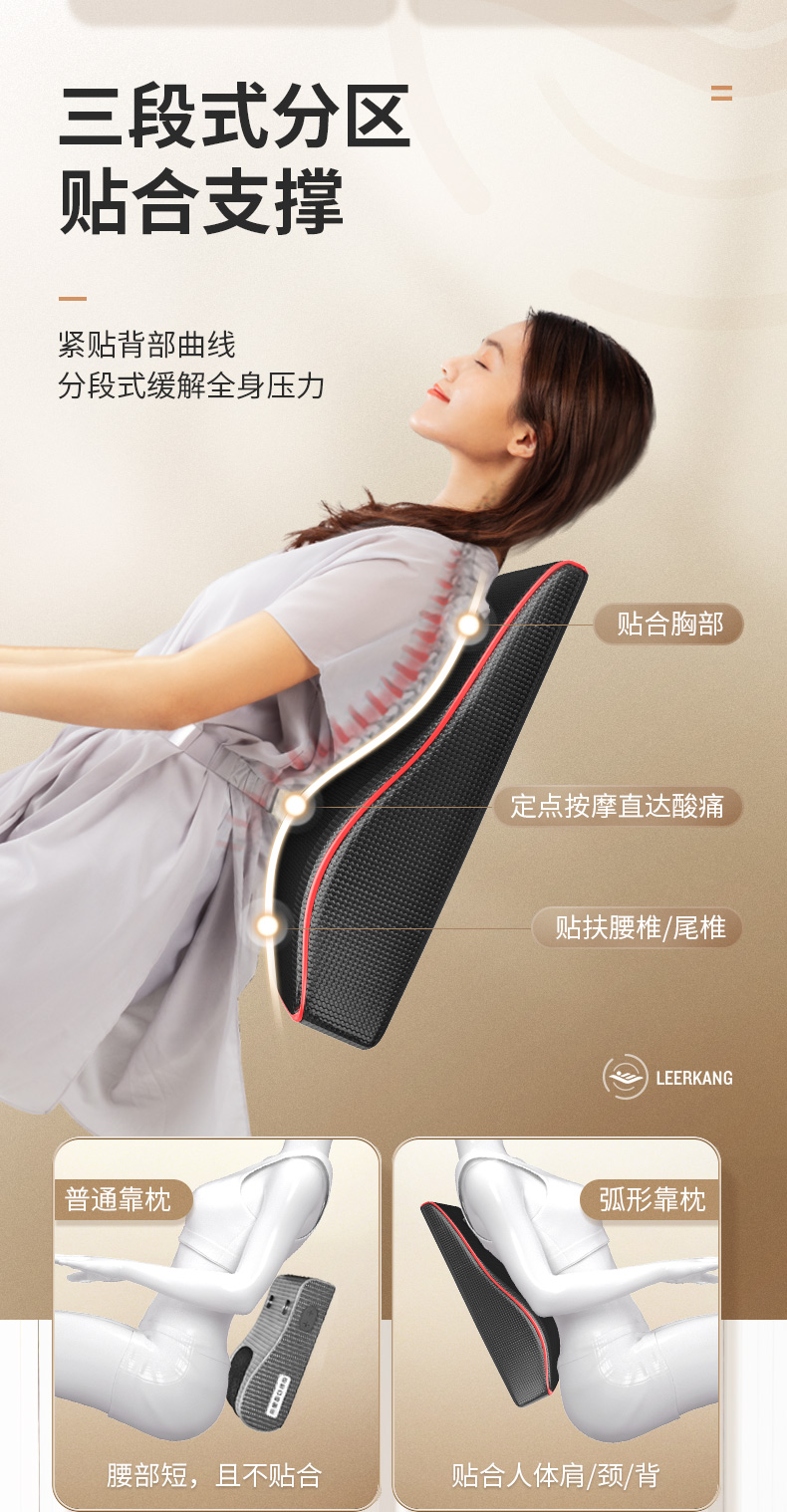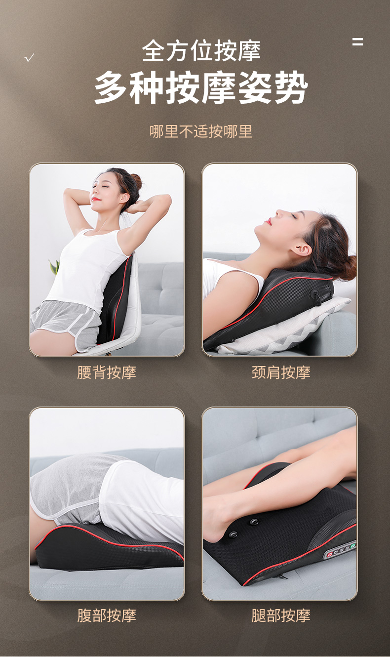 多功能全身理疗按摩枕,弧形承托,腰部抢支撑,坐姿更舒适,仿真人按摩,三挡调控,三种模式,想这么按就这么按~