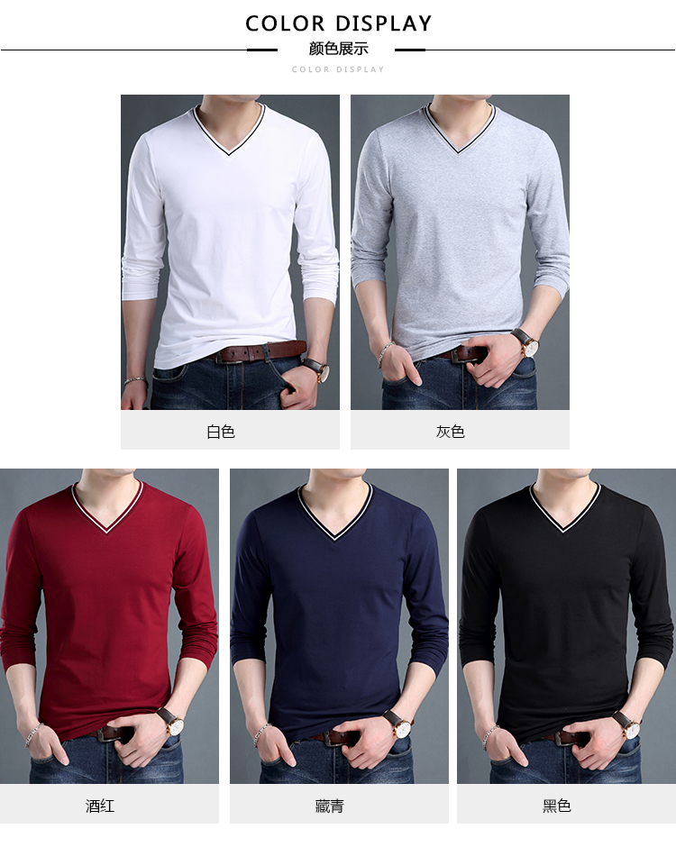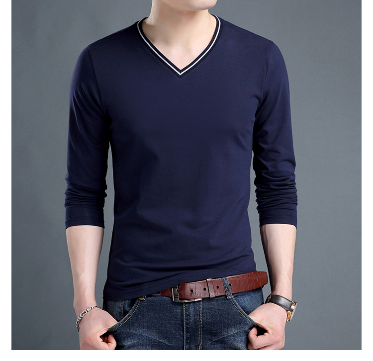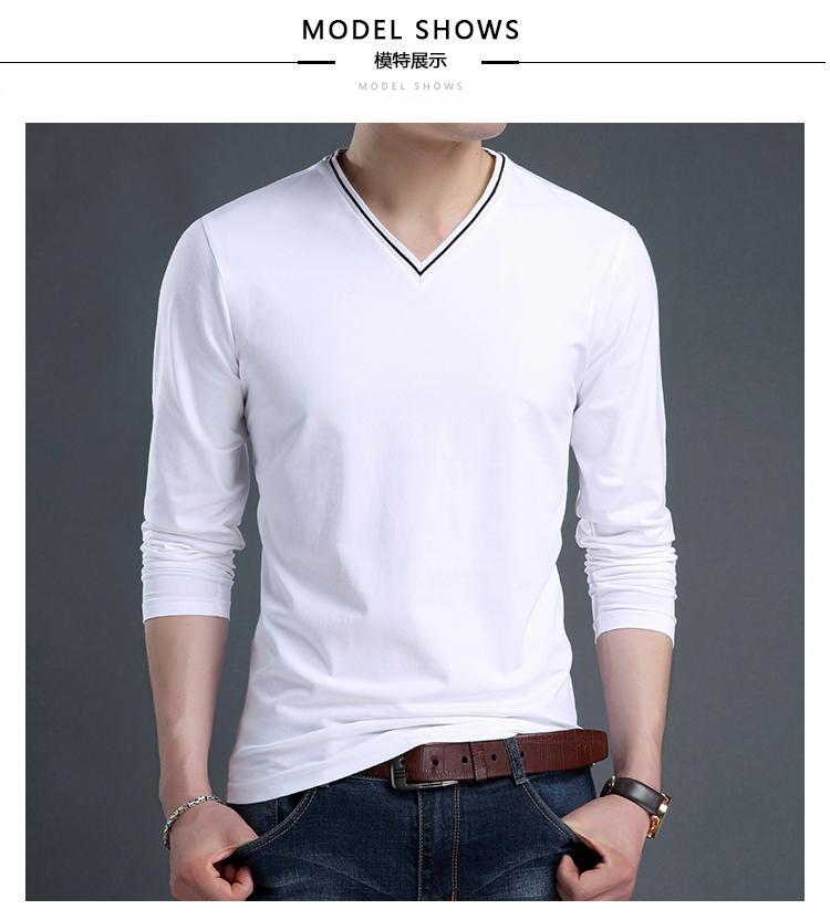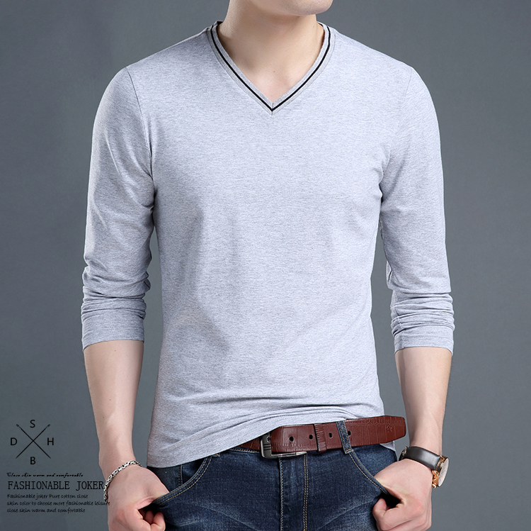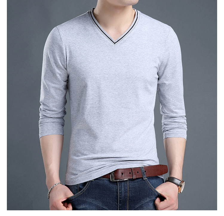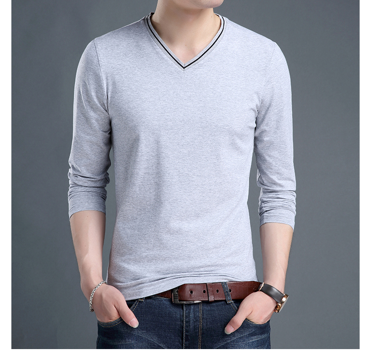 夏季新款男士长袖V领T恤男 青年韩版修身纯棉打底体恤衫薄款衣服