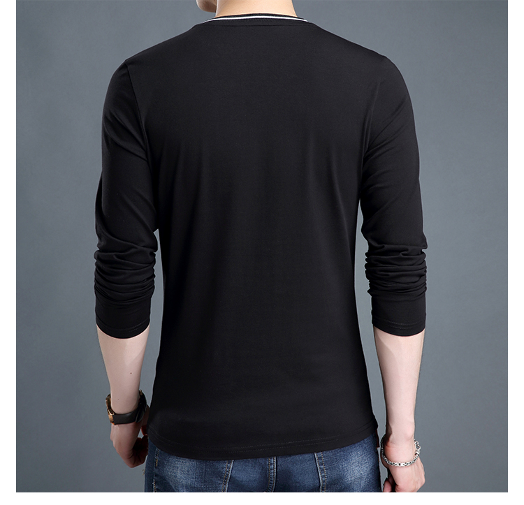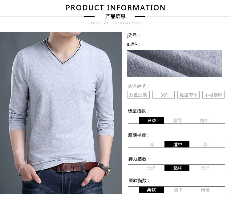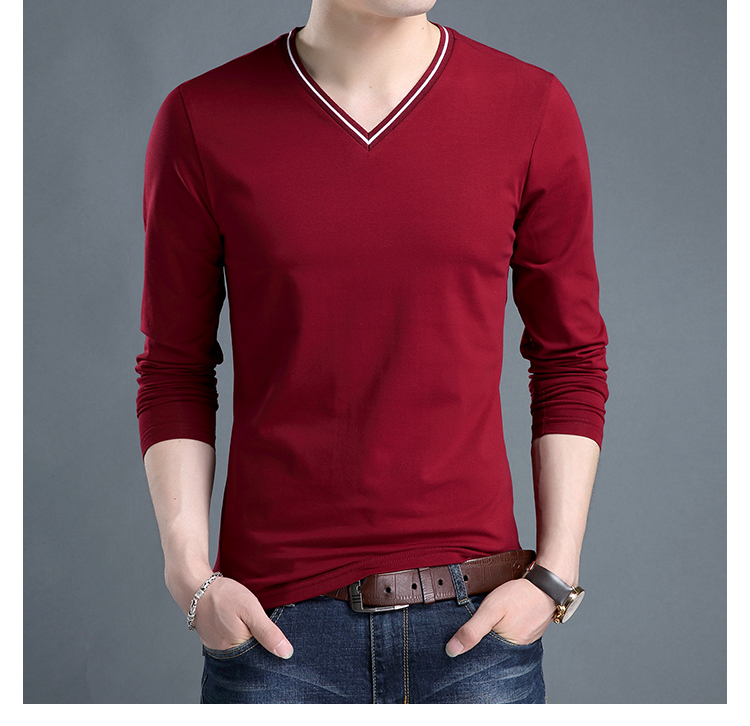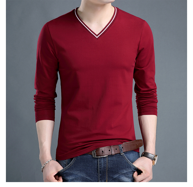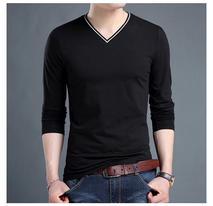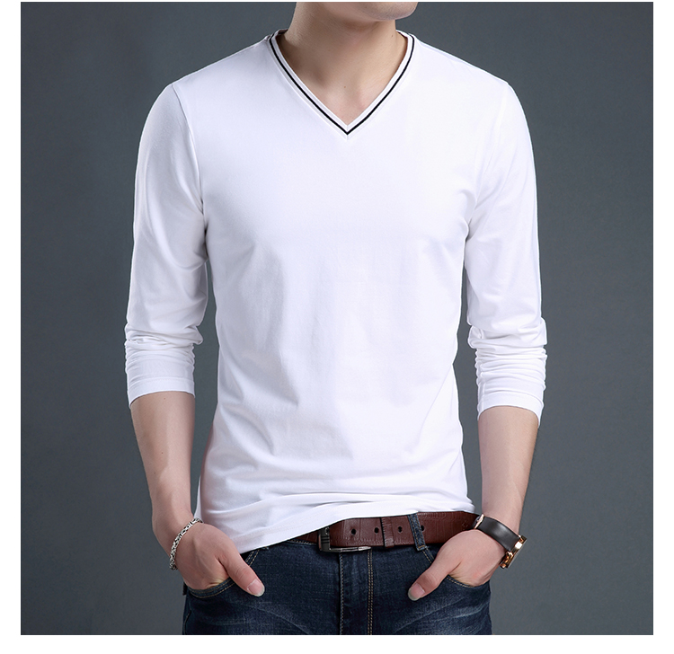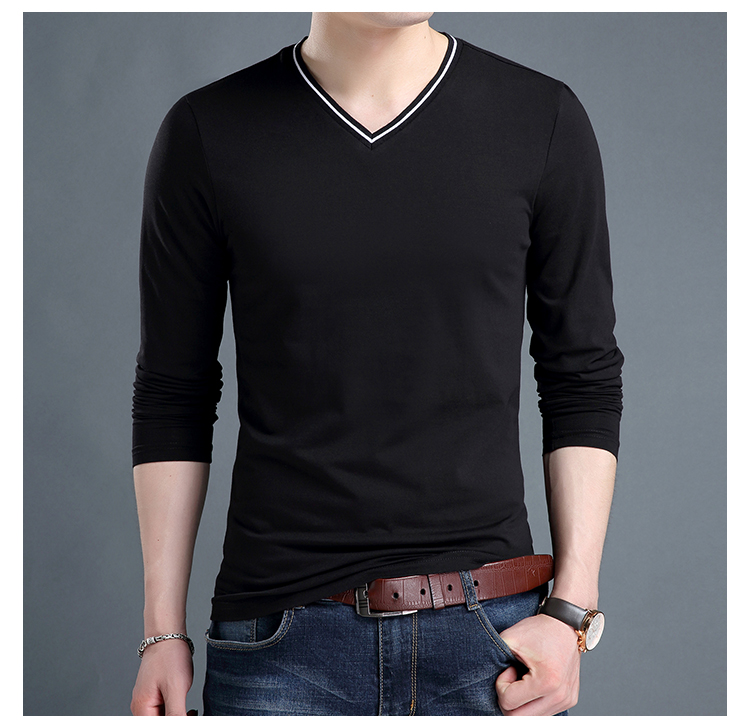 夏季新款男士长袖V领T恤男 青年韩版修身纯棉打底体恤衫薄款衣服