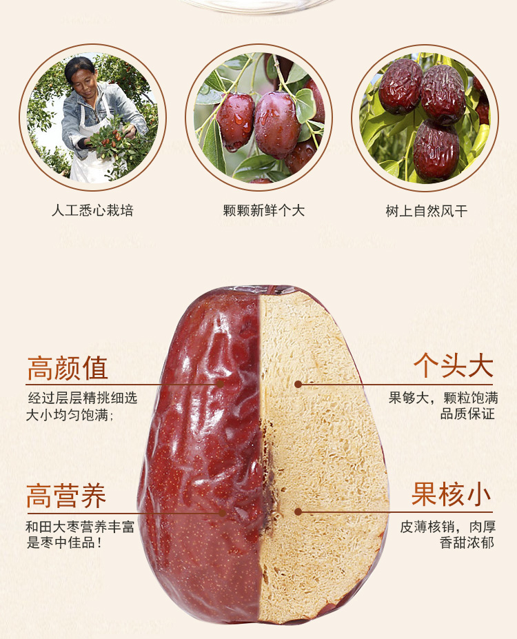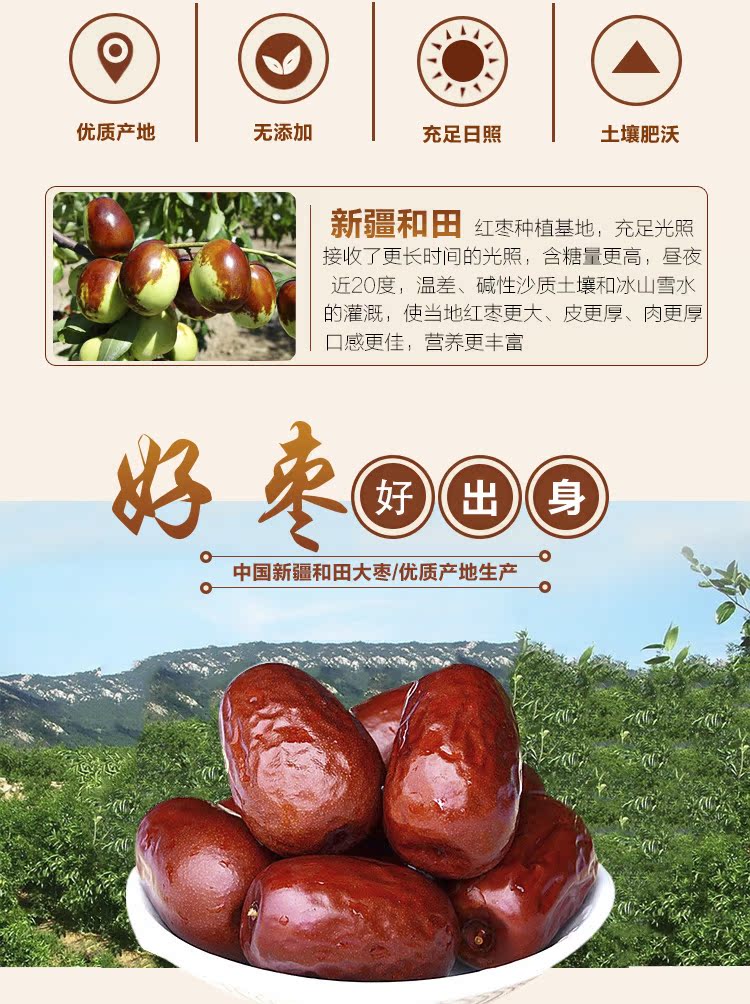 正宗和田大枣2斤装,核小皮薄,肉质紧实,补血养气,枣香浓郁,营养丰富,颗颗饱满圆润,孕妇小孩滋补佳品,舌尖上的美味,赶紧囤货~【赠运费险】