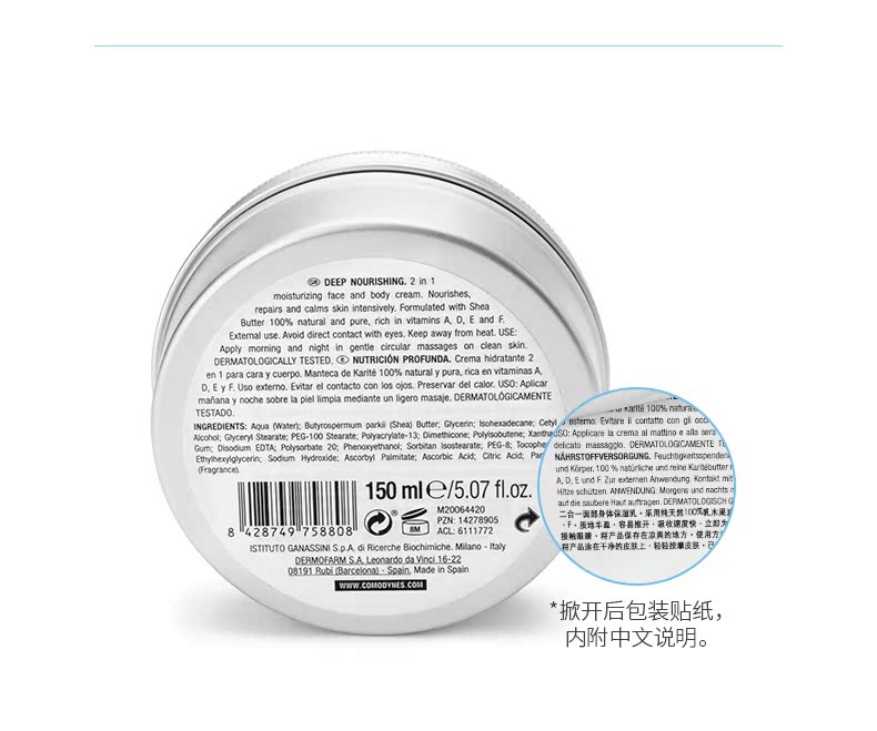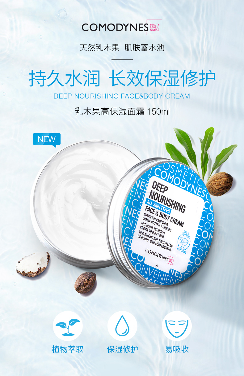 Comodynes乳木果高保湿面霜150ml补水修护保湿身体乳脸面部润肤霜