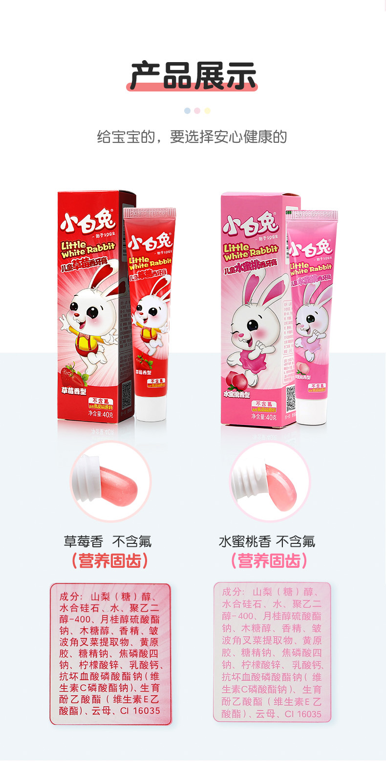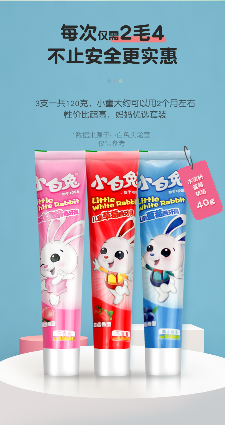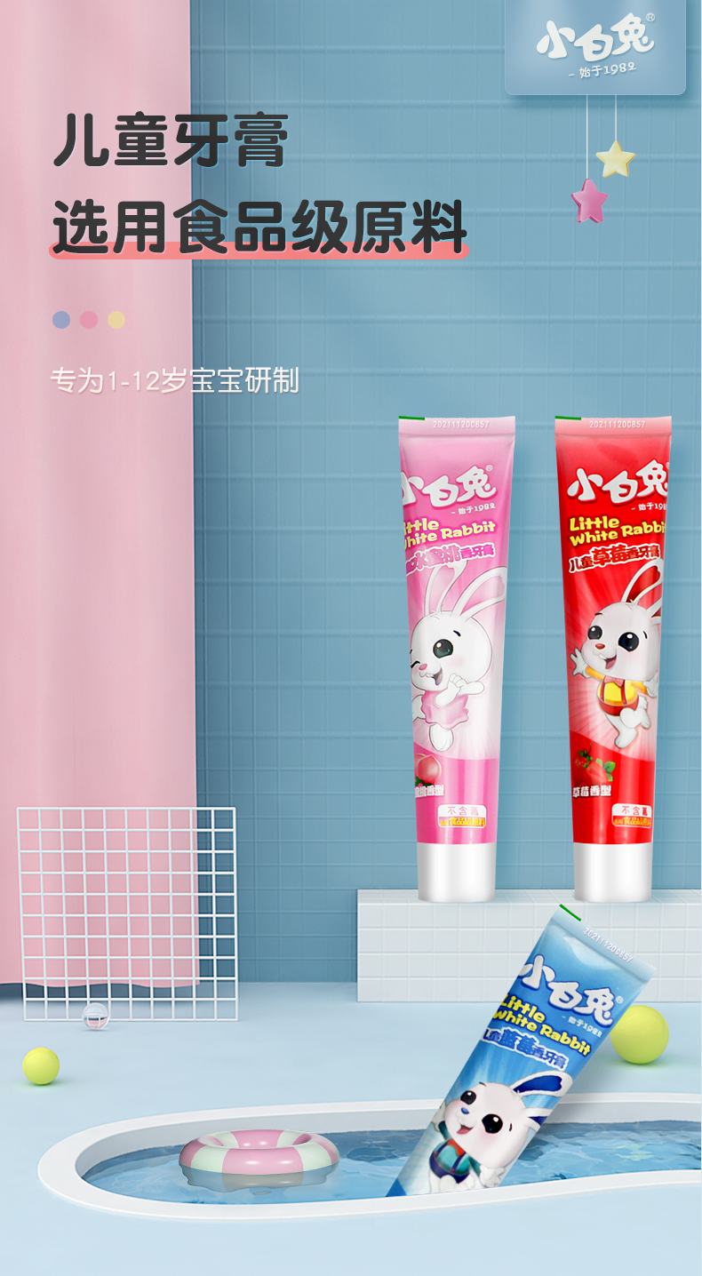 小白兔儿童牙膏 2-12岁儿童防蛀牙膏食品级40克*4支套装水果味
