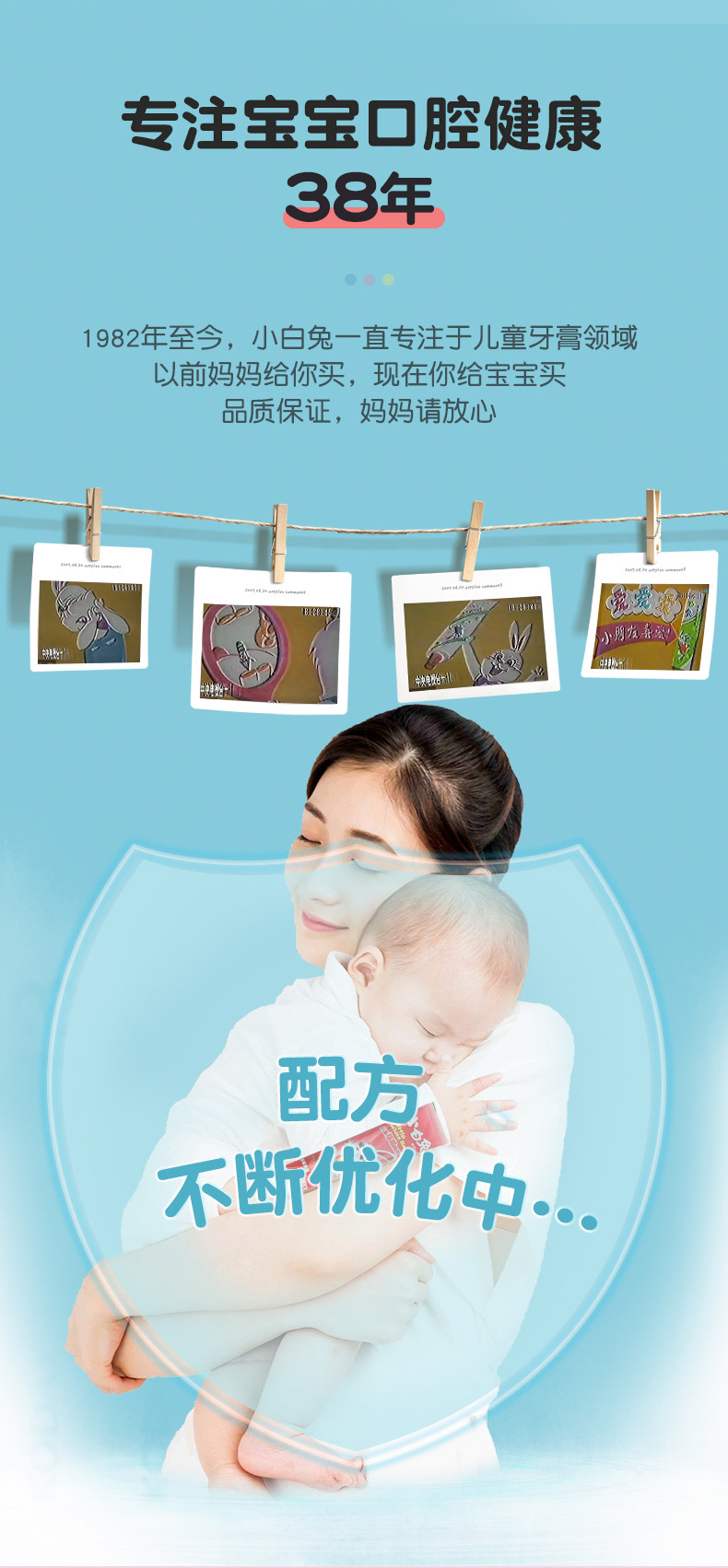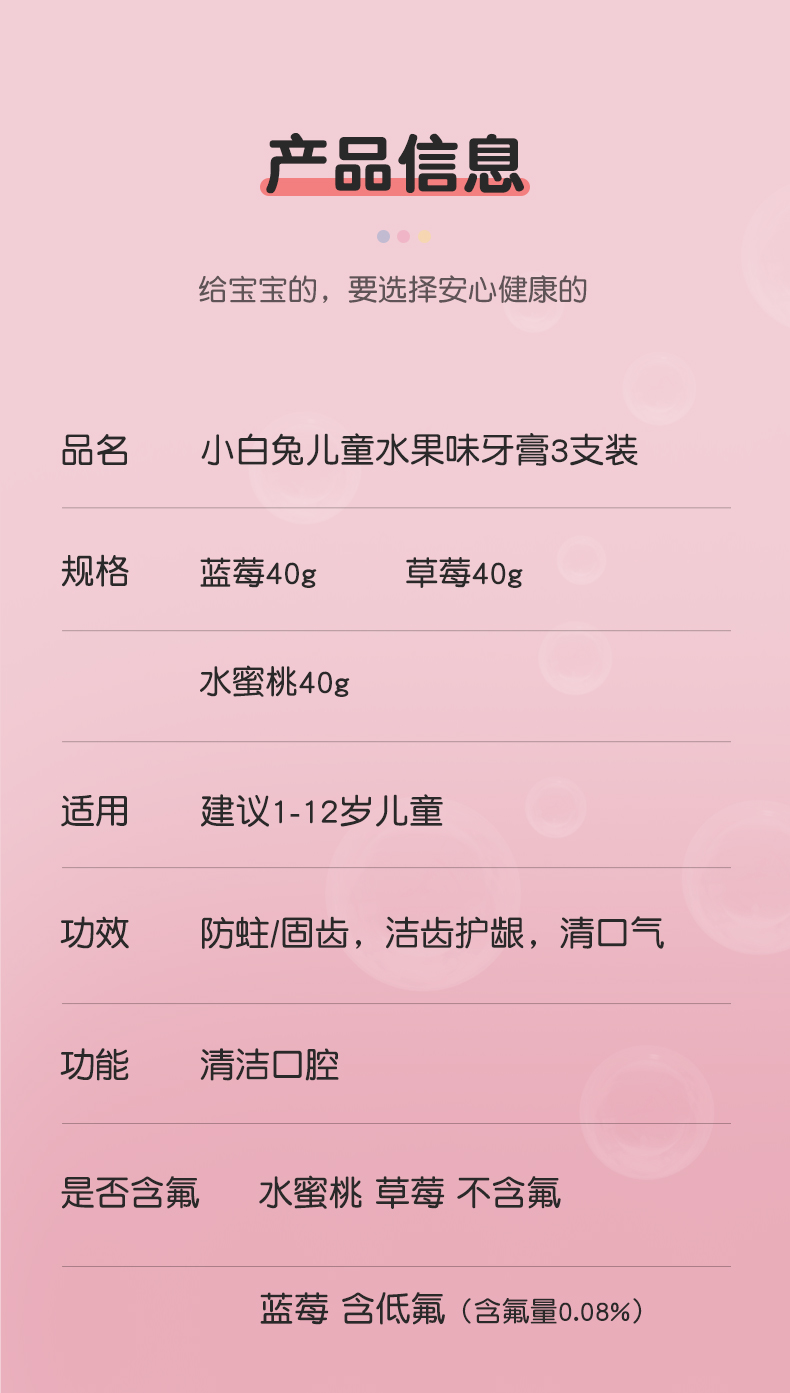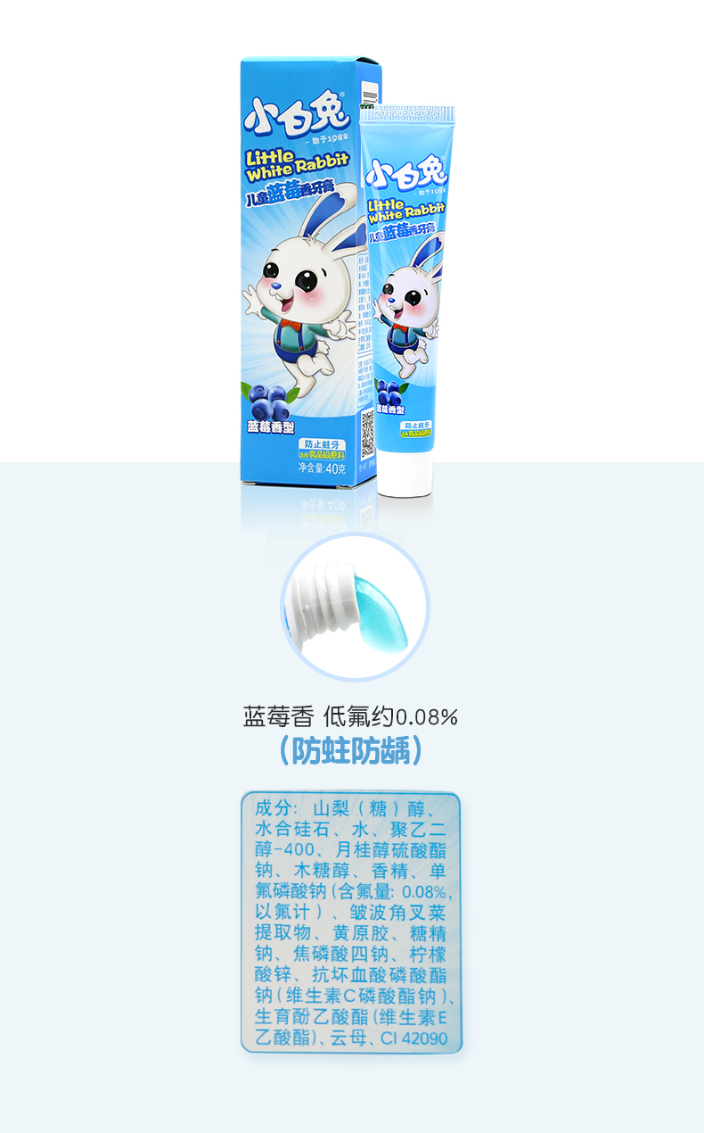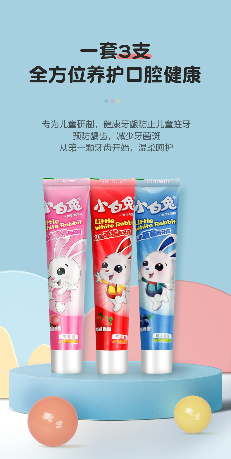 小白兔儿童牙膏 2-12岁儿童防蛀牙膏食品级40克*4支套装水果味