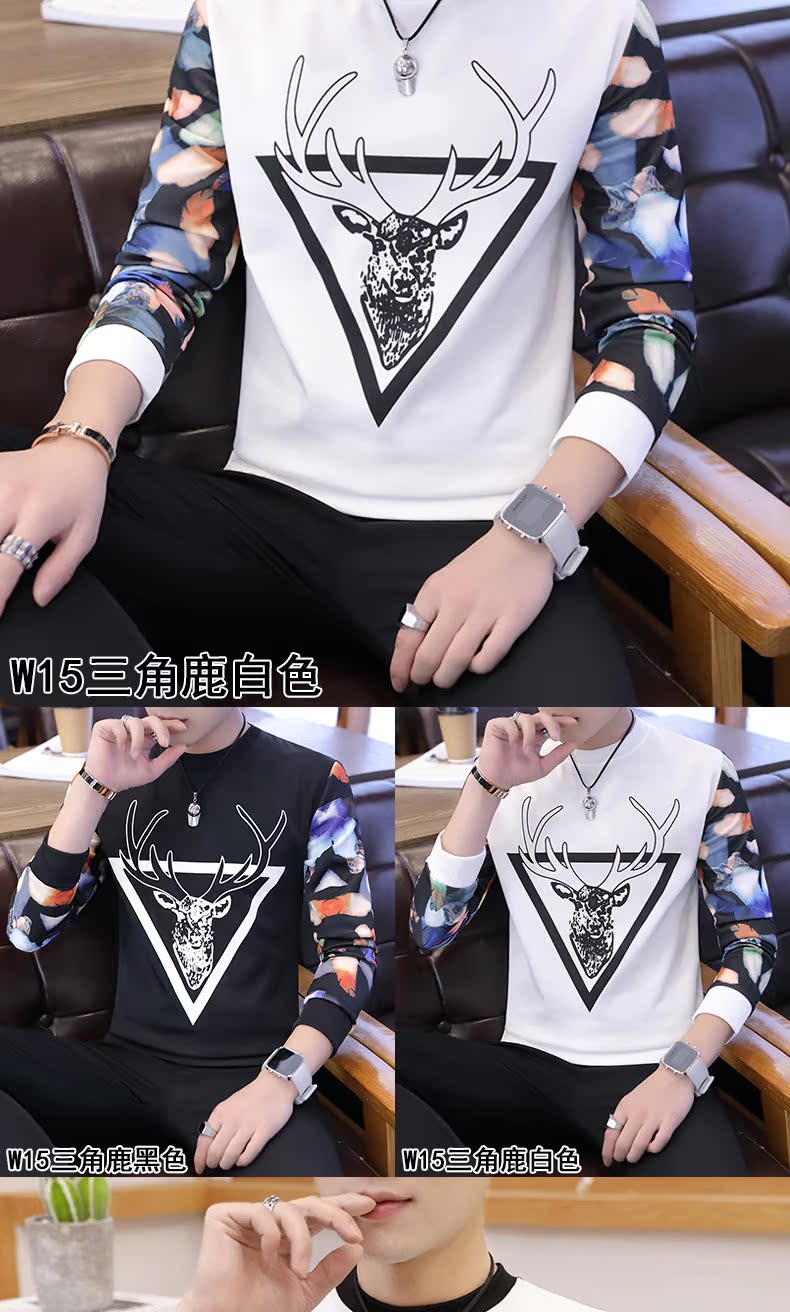 秋冬季新款加绒加厚男士长袖t恤圆领套头青少年韩版修身潮打底衫