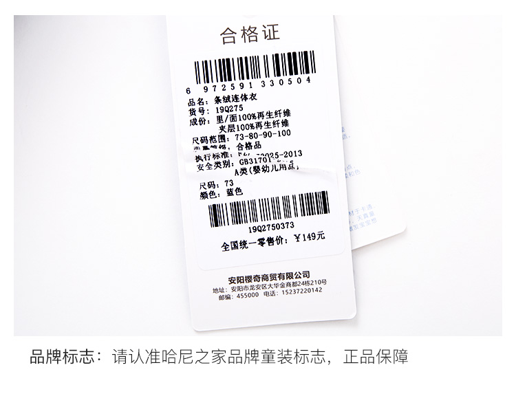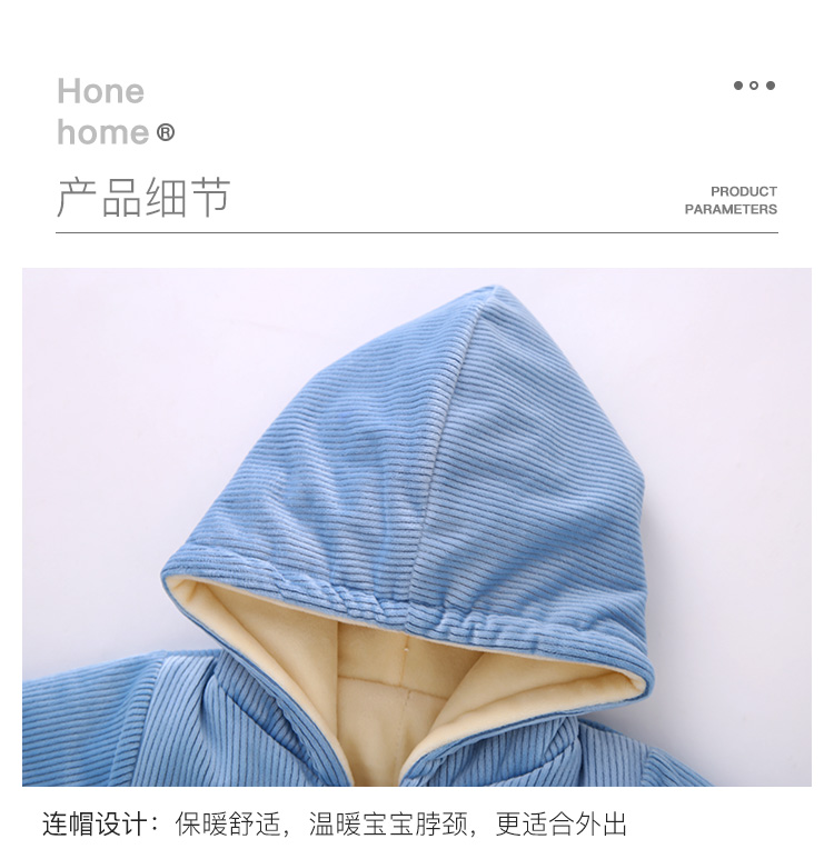 A类国标,灯芯绒面料,加厚保暖,不含荧光剂!金丝绒内里,更柔软更亲肤,秋冬外出必备哈衣!