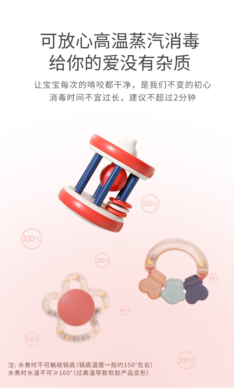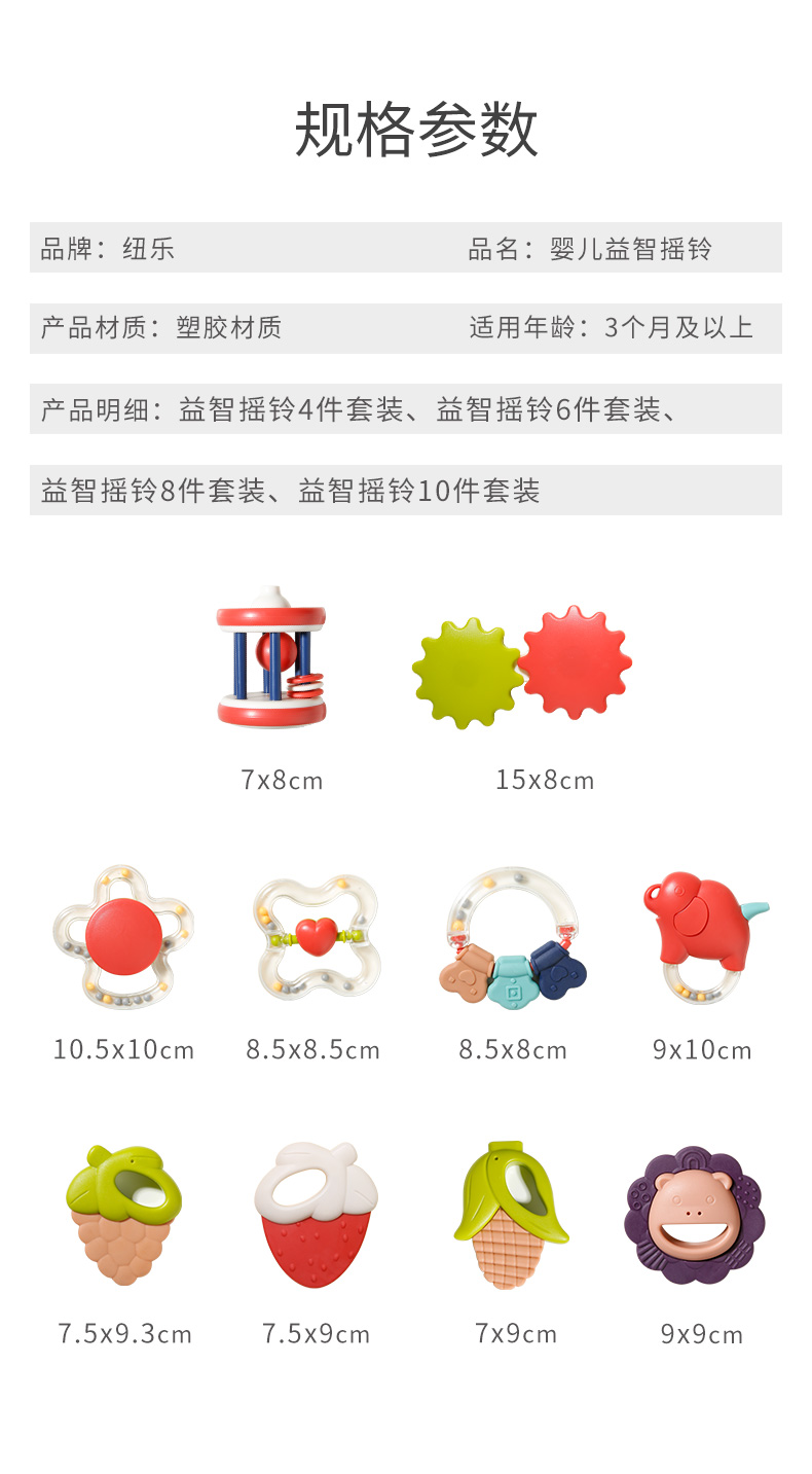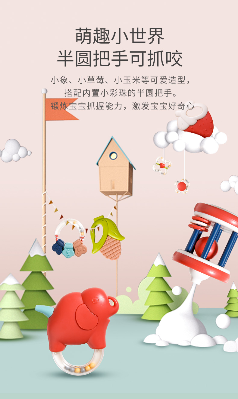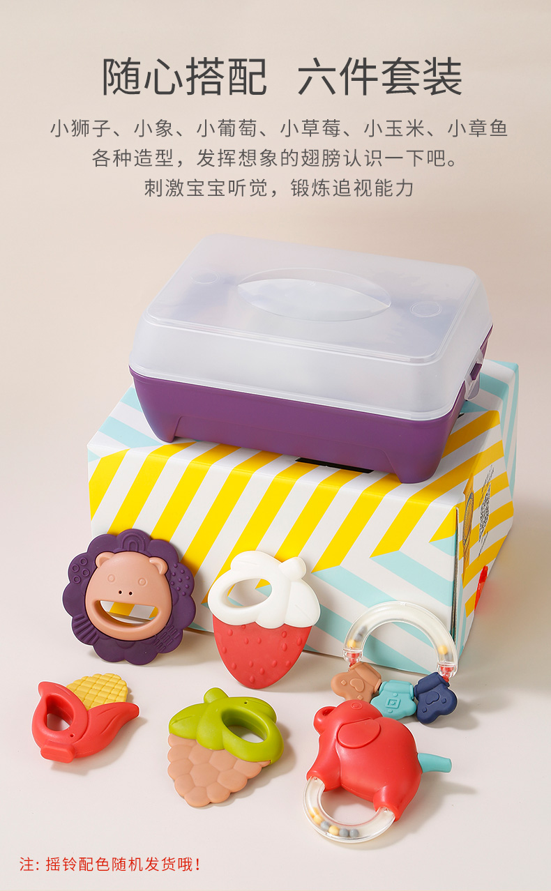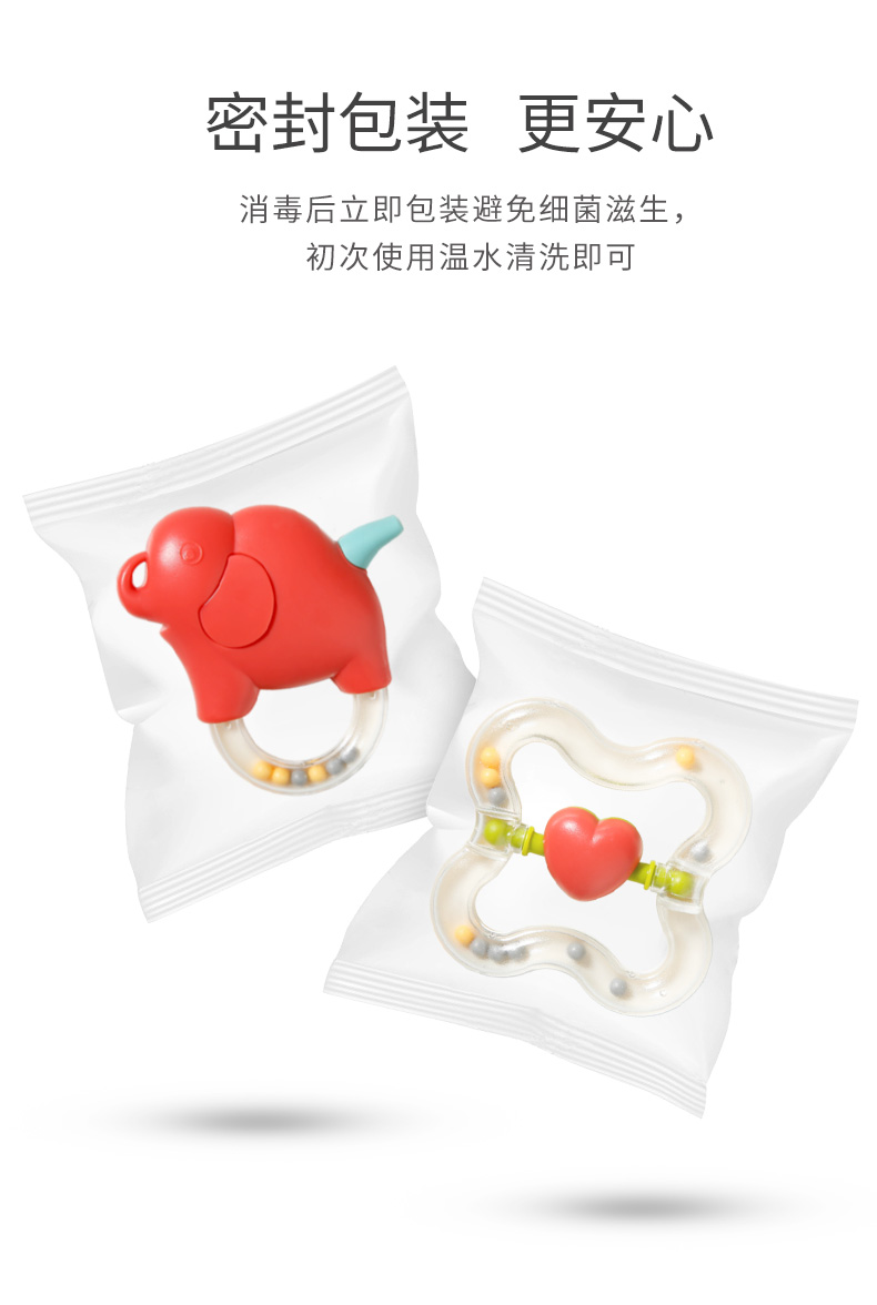 【可高温水煮消毒】呆萌造型,益智牙胶手摇铃婴儿玩具,环保ABS材质,趣味造型,完全无异味,宝宝随心咬,柔软柔韧不变形,宝宝爱不释手,万千妈妈的选择~