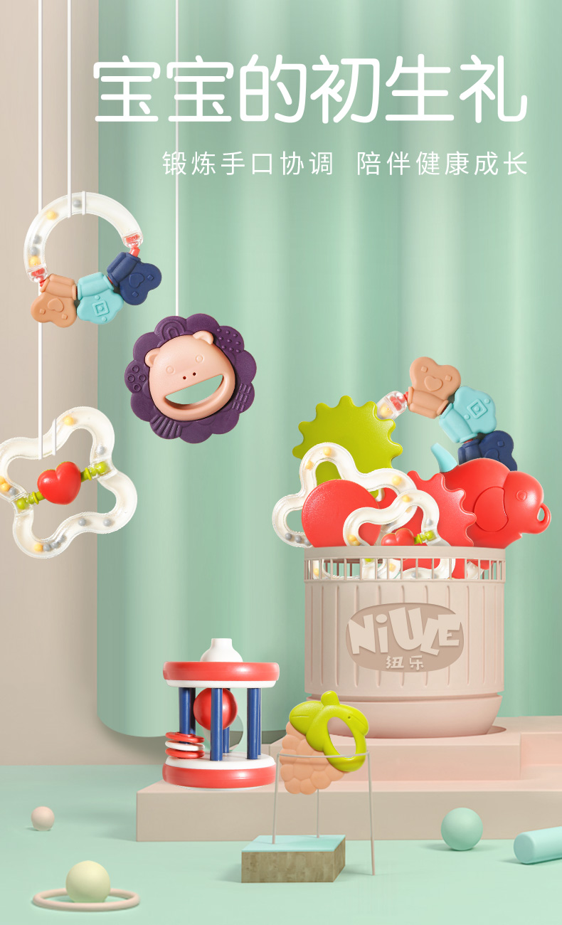纽乐婴儿手摇铃玩具0-1岁 新生儿3-6-12个月宝宝早教益智抓握牙胶