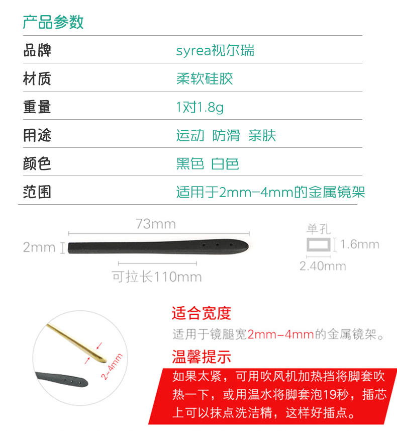 眼镜防滑套硅胶固定脚套运动防掉器眼睛配件金属细腿支架耳勾托套