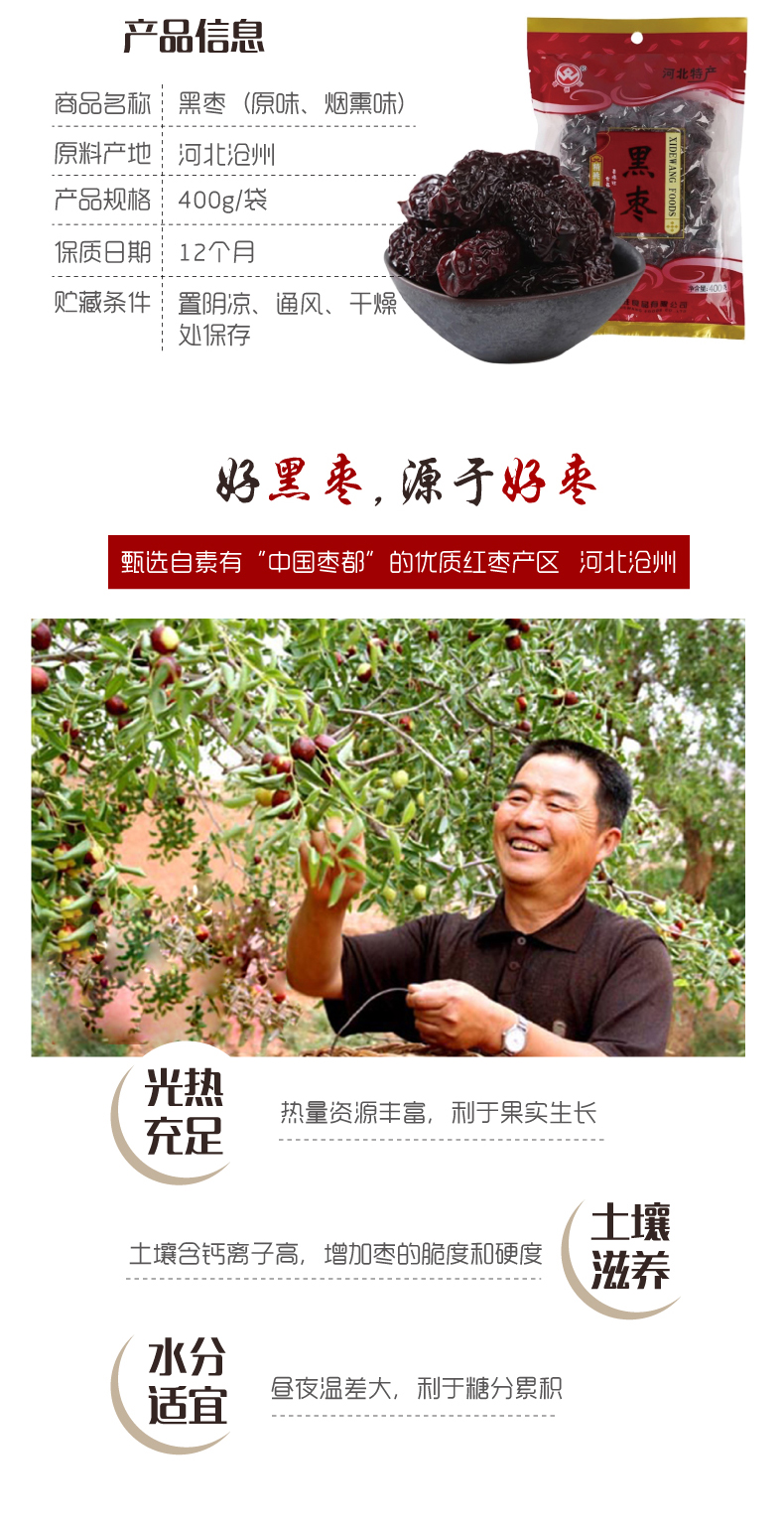 【第2件9.9 】黑枣干乌枣干烟熏枣紫晶枣河北特产400g/袋