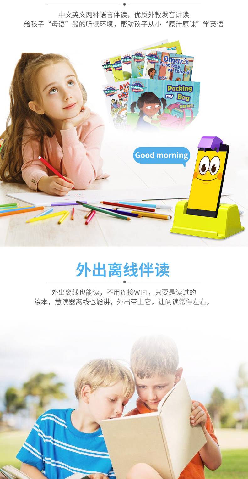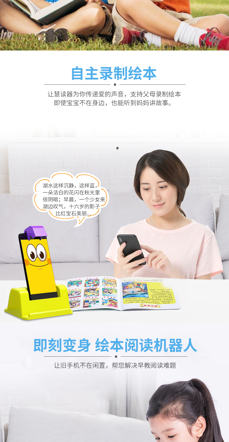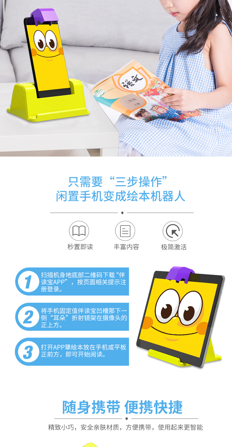 喵王伴读宝,闲置手机一秒变身绘本阅读机器人,翻哪读哪,秒翻秒读,中英双语伴读!培养孩子阅读好习惯!造型超Q可爱~也可做手机支架使用,性价比很高!