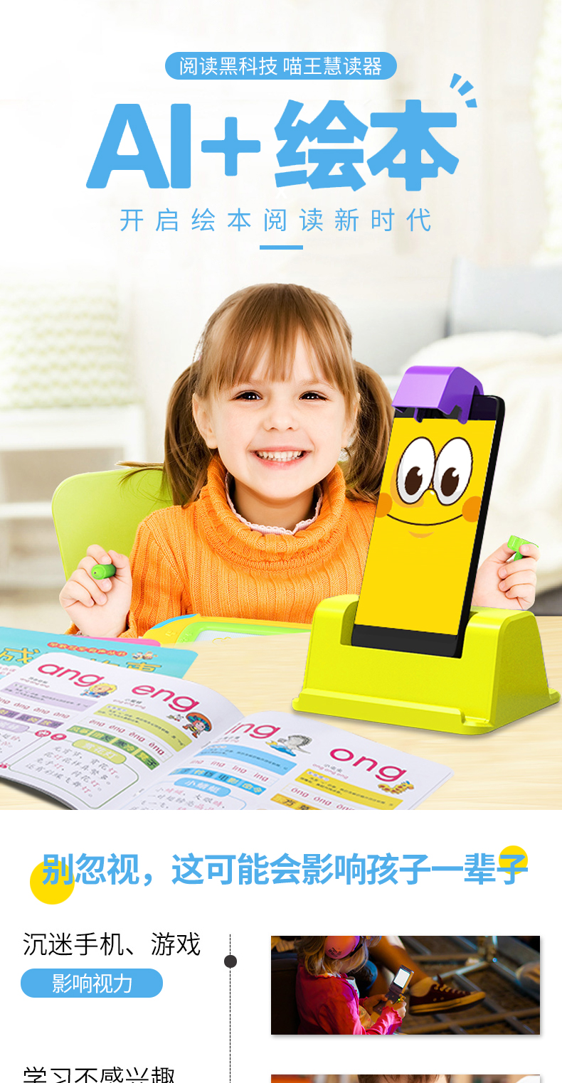 喵王AI慧读器点读机绘本阅读机器人早教机故事机学习机0-12岁宝宝启蒙益智diy英语教材睡前有声阅读器伴读宝