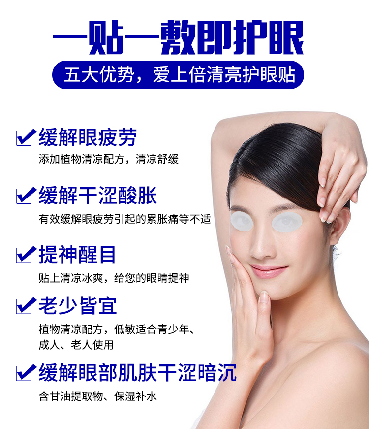 舒缓眼部疲劳,淡化黑眼圈,冷敷眼贴。针对电脑族,手机族,上班族,熬夜,提神醒脑,还你水润明眸~