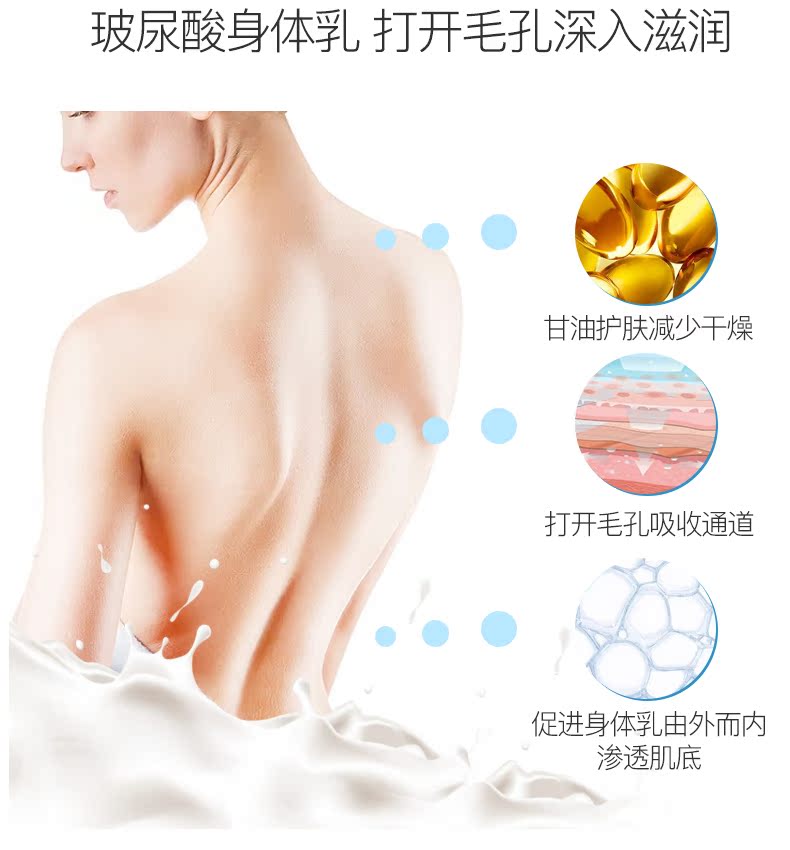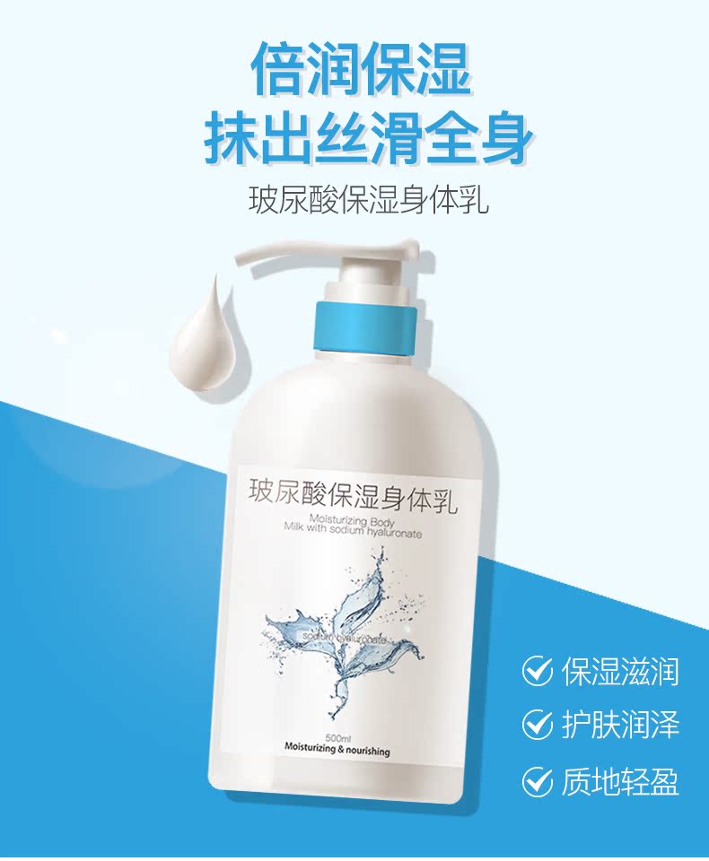 玻尿酸保湿身体乳,保湿滋润,护肤润泽,质地轻盈,渗透滋养,柔润皮肤,令肌肤光滑有弹性,持久留香
