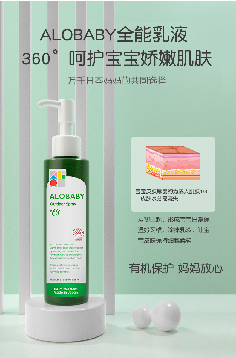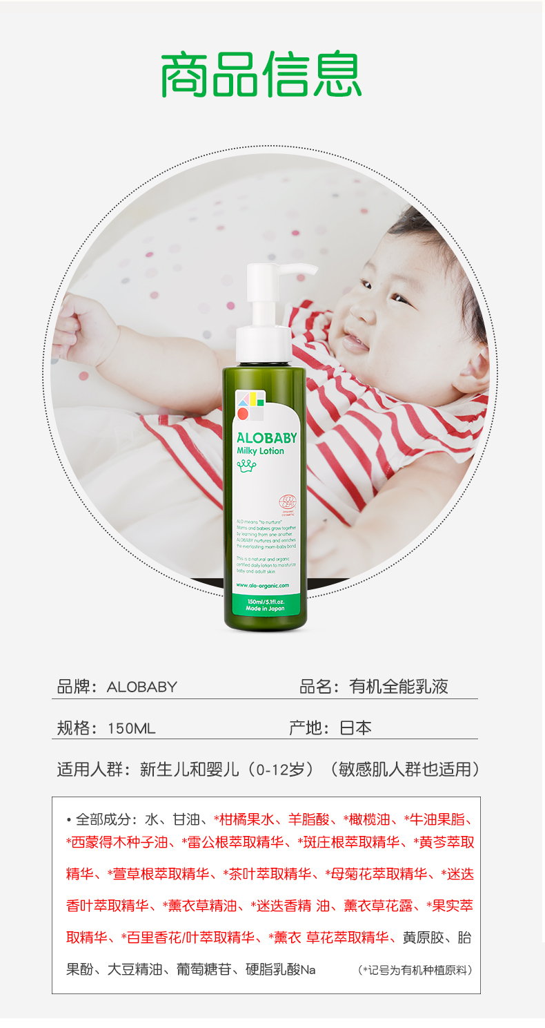 ALOBABY安诺宝有机婴幼儿童润肤乳液150ml*2日本宝宝儿童保湿面霜
