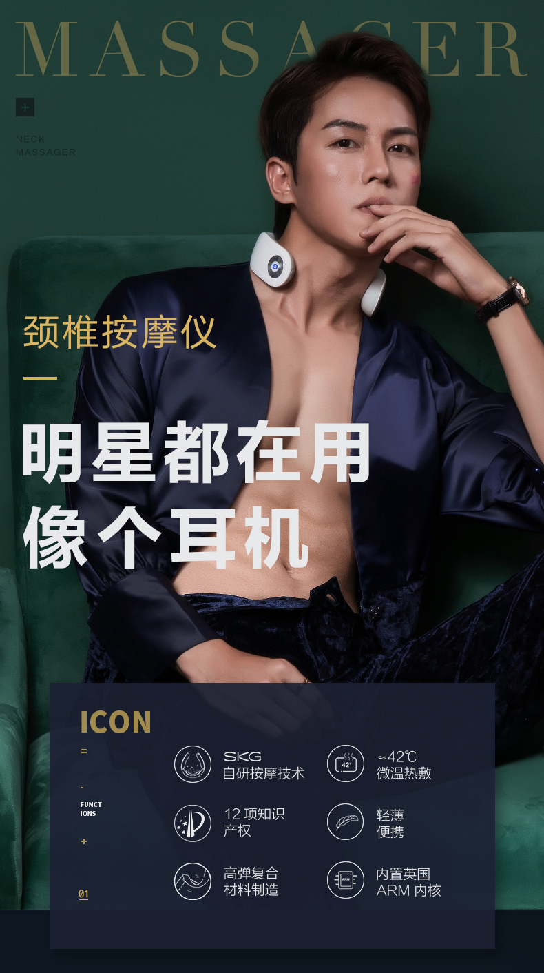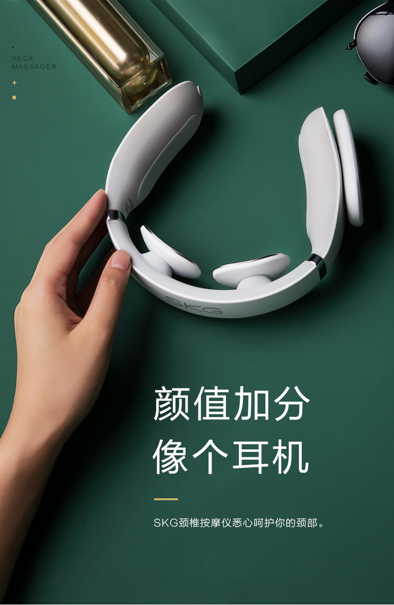 【skg新品上市,券后199明星力荐】低频脉冲按摩仪,78g近乎零重感,U型环颈设计佩戴贴肤,洼胶电极片TENS低频脉冲,激活颈椎活力,一次充电续航8天,颈肩呵护一件搞定。