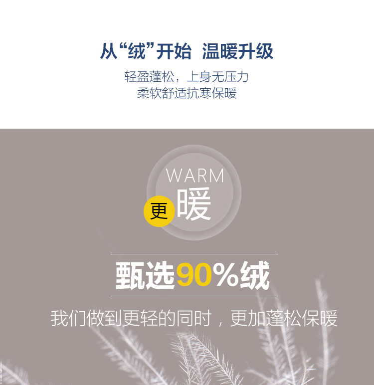 柔软的白鸭绒,拥有舒服贴身的穿着触感,精致压线,纺织钻绒,,每一个工序都多一份用心,冬天美美哒!