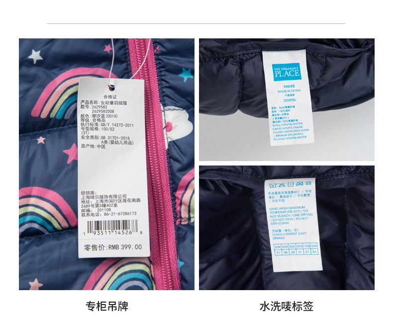 TheChildrensPlace/绮童堡2019秋季新款女宝宝可爱色彩羽绒服外套