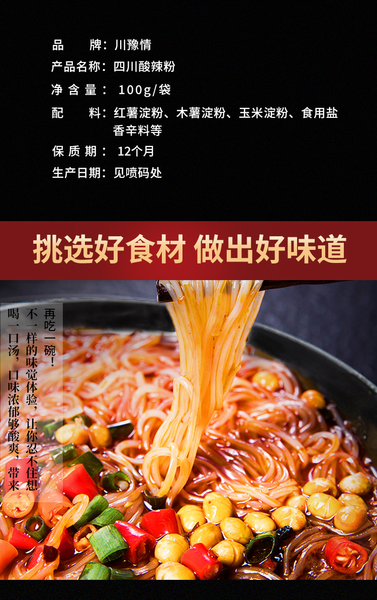 川豫情四川特色酸辣粉100克*8袋 红薯粉丝方便面速食袋装学生夜宵